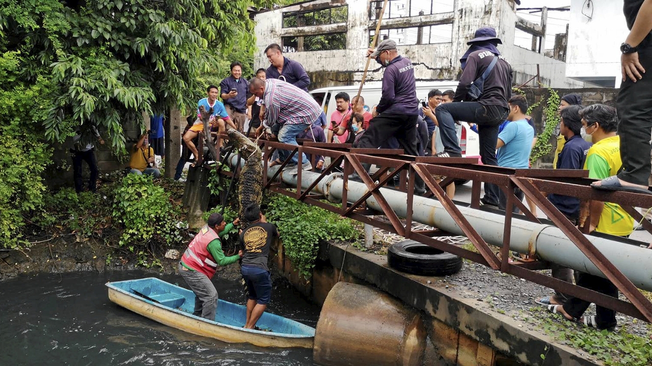 เหตุระทึก ชาวบ้านเจอจระเข้นอนอาบแดดกลางถนน โร่แจ้งผู้ใหญ่บ้านระดมชาวบ้านช่วยกันไล่ล่าจับตายคาท่อ เปิดเผยเมื่อเวลา 07.00 น. วันที่ 28 ก.ย. นายกฤษฏ์ ชัยชนะ อายุ 47 ปี ผู้ใหญ่บ้านหมู่ 1 ต.ท่าข้าม อ.สามพราน จ.นครปฐม ได้รับแจ้ง จากชาวบ้านว่า พบจระเข้ตัวใหญ่อยู่ในคลองนา ริมซอยเปโตร 3 หมู่ 6 ต.ท่าข้าม จึงประสานตำรวจ สายตรวจ สภ.โพธิ์แก้ว อ.สามพราน และเจ้าหน้าที่กู้ภัย อบต.ท่าข้าม ไปตรวจสอบ