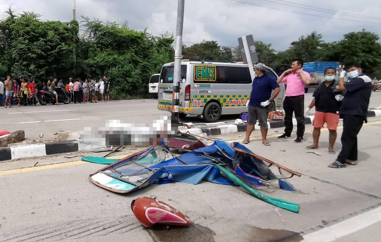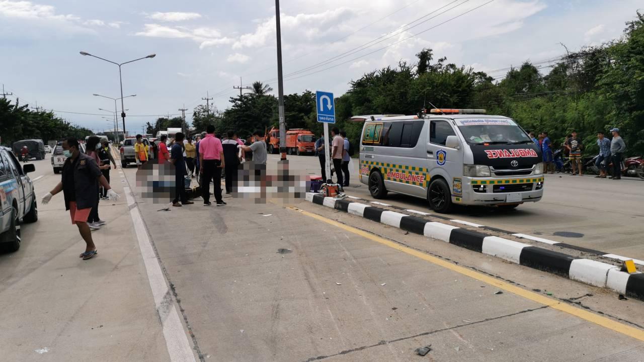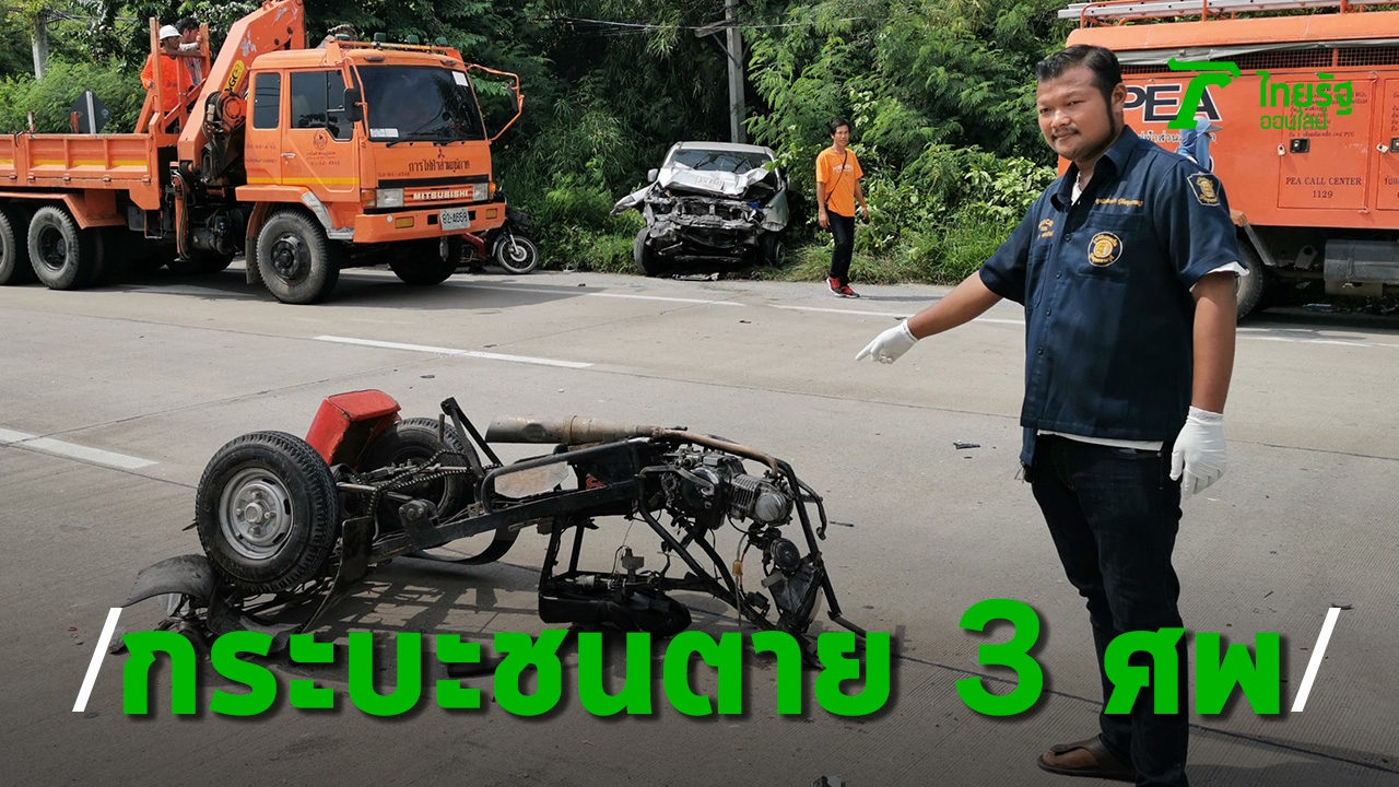 สามล้อรับจ้างพาลุงป้ากลับจากหาหมอที่ รพ.เจ้าพระยายมราช เลี้ยวจะกลับรถตัดหน้ากระบะ ที่จุดกลับรถบางหมัน บนถนนมาลัยแมน สุพรรณบุรี ชนกระเด็นตาย 3 ศพ ลูกชายเผยผ่านมาดู 2 รอบ ไม่รู้ว่าเป็นศพพ่อแม่