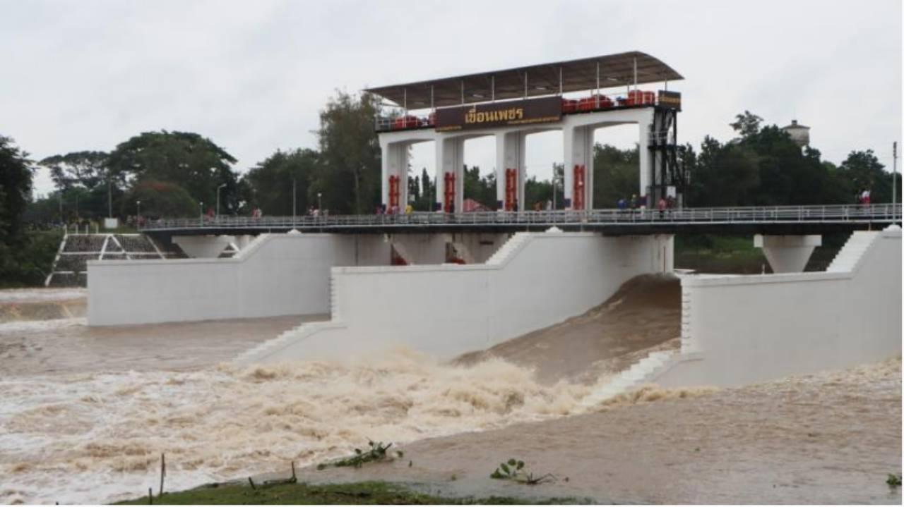 จากกรณีที่ นายสันต์ จรเจริญ ผู้อำนวยการโครงการส่งน้ำและบำรุงรักษาจังหวัดเพชรบุรี เปิดเผยว่า ฝนที่ตกต่อเนื่องมาหลายวันทำให้ปริมาณน้ำในพื้นที่ลุ่มน้ําแม่ประจันต์มีปริมาณมากผนวกกับพื้นที่รับนำ้ใต้เขื่อนแก่งกระจานและลำน้ำห้วยผาก มวลน้ำกว่า 300 ลูกบาศ์กเมตรต่อวินาที จึงไหลลงสู่เขื่อนเพชร ซึ่งเป็นอาคารจัดสรรน้ำโดยทางชลประทานได้นำเข้าระบบในคลอง 4 สายได้ส่วนหนึ่ง แต่ยังมีปริมาณน้ำอีก 220 ลูกบาศก์เมตรต่อวินาทีที่ต้องระบายสู่แม่น้ำเพชรบุรี ซึ่งจะไหลผ่านตัวเมืองเพชรได้ประมาณ 150 ลูกบาศ์กเมตรต่อวินาที ประกอบกับมีการก่อสร้างสะพานรถไฟ ทำให้การระบายน้ำลดลงเหลือไม่เกิน 100-110 ลบ.ม./วินาที จึงทำให้น้ำที่ระบายเอ่อตัวสูงขึ้น