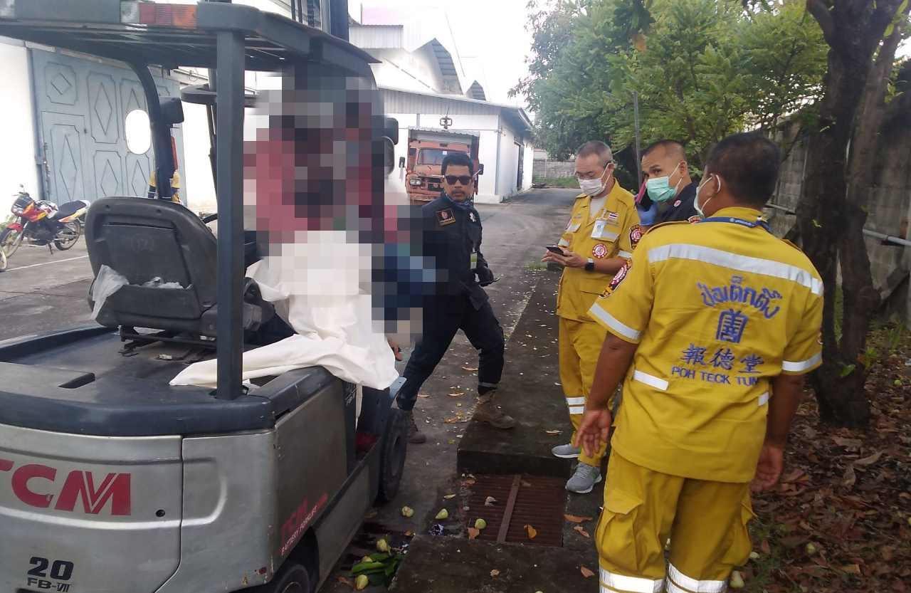 เวลา 15.30 น. วันที่ 14 ต.ค. ร.ต.อ.หญิงอภิญญา อ่วมบุญมี รอง สว.สอบสวน สภ.โพธิ์แก้ว อ.สามพราน จ.นครปฐม ได้รับแจ้งมีเหตุรถโฟร์คลิฟต์หนีบคนเสียชีวิต ภายในบริษัททอผ้าแห่งหนึ่งใน หมู่ 7 ซอยไร่ขิง 26 ต.ไร่ขิง อ.สามพราน จ.นครปฐม จึงไปตรวจสอบพร้อมด้วยแพทย์เวร รพ.สามพราน มูลนิธิป่อเต็กตึ๊ง กู้ชีพเทศบาลเมืองไร่ขิง