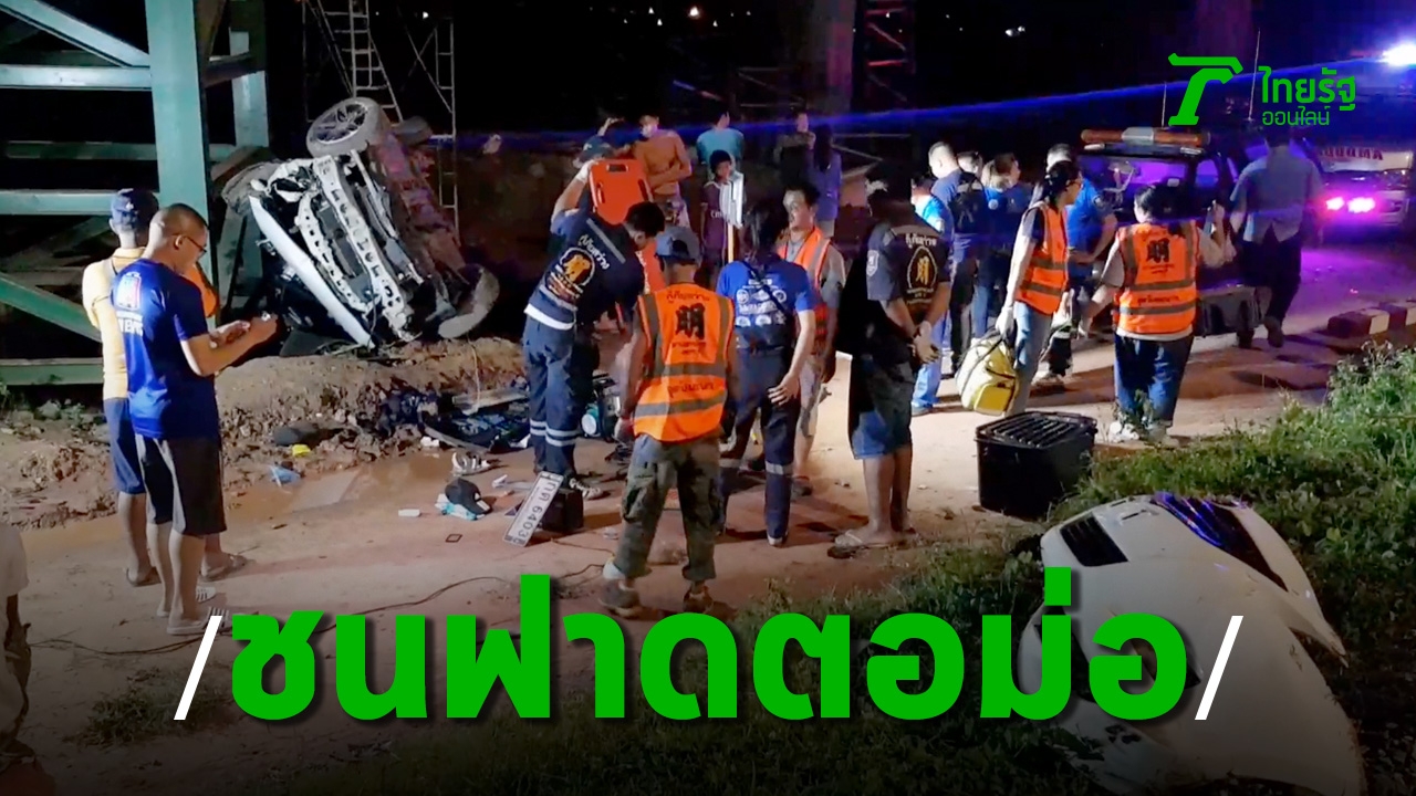 รถไฟด่วนพิเศษ "กรุงเทพ-สุราษฎร์ธานี" ชนเก๋งสนั่น คาจุดตัดทางบ้านห้วยโรง เพชรบุรี เก๋งลอยฟาดเสาตอม่อสะพานพังยับ หนุ่มเจ็บคาซากเก๋ง 2 สาวกระเด็นตายนอกรถ 1