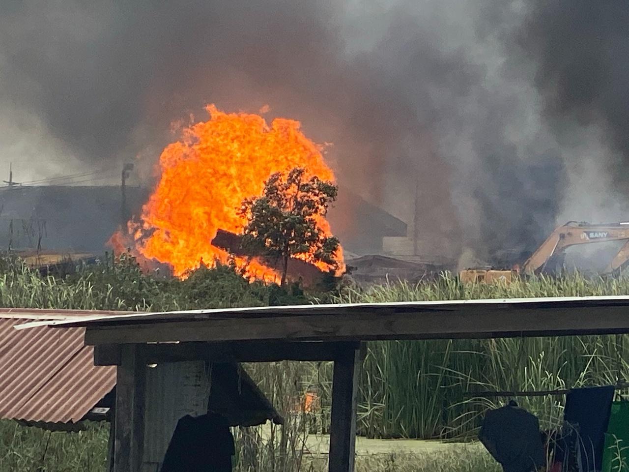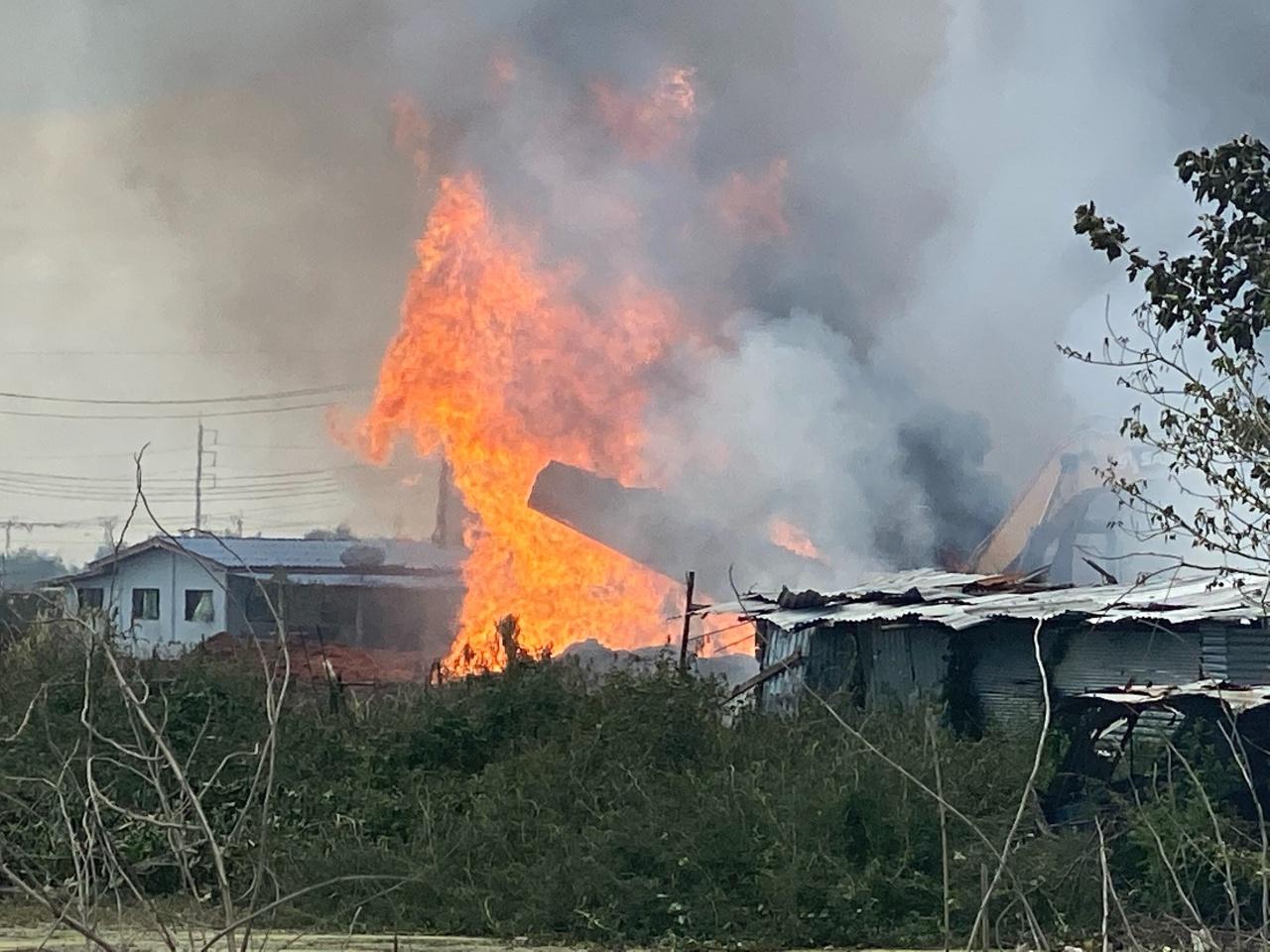 จากเหตุท่อก๊าซธรรมชาติระเบิด ข้าง สภ.เปร็ง หมู่ 9 ตำบลเปร็ง อำเภอบางบ่อ จ.สมุทรปราการ เมื่อช่วงบ่ายวันที่ 22 ต.ค.63