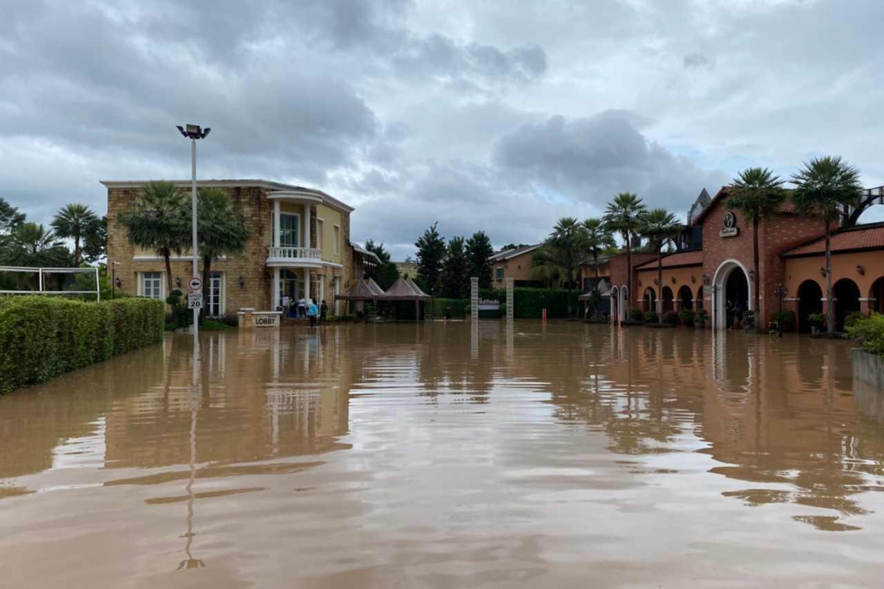 ส่วนที่ลานจอดรถด้านล่างถูกกระแสน้ำทะลักเข้าท่วมรถยนต์จมอยู่ใต้น้ำมิดหลังคา บางคันถูกกระแสน้ำพัดสูญหาย สถานที่ห้องพัก โรงแรม ถูกน้ำท่วม หน่วยกู้ภัยเข้าช่วยผู้ที่ติดอยู่ภายในออกมายังด้านนอก นอกจากนี้ยังพบสัตว์เลี้ยง เช่น แพะ แกะ ม้า วัวพันธุ์บราห์มันหลายร้อยตัว ถูกน้ำท่วมอยู่ในโรงเรือนของโรงแรม เวโรน่า
