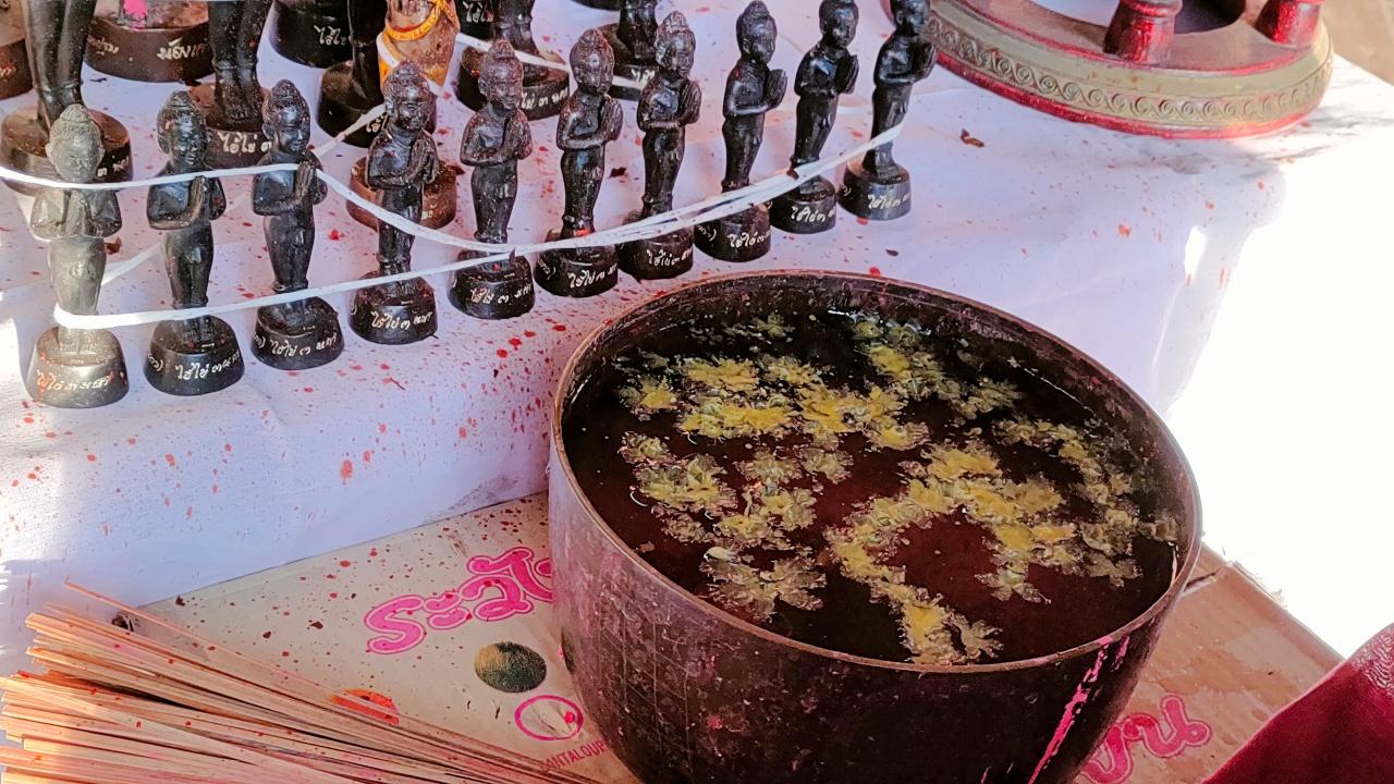 หลังเสร็จสิ้นพิธีกรรมดังกล่าว คอหวยนักเสี่ยงโชตต่างแห่ดูหยดน้ำตาเทียนในขันน้ำมนต์ ที่อาจารย์แป๊ะทำไว้ เพื่อนำไปเสี่ยงโชคกัน โดยหลายคนเห็นเป็นเลข 58 และ 88