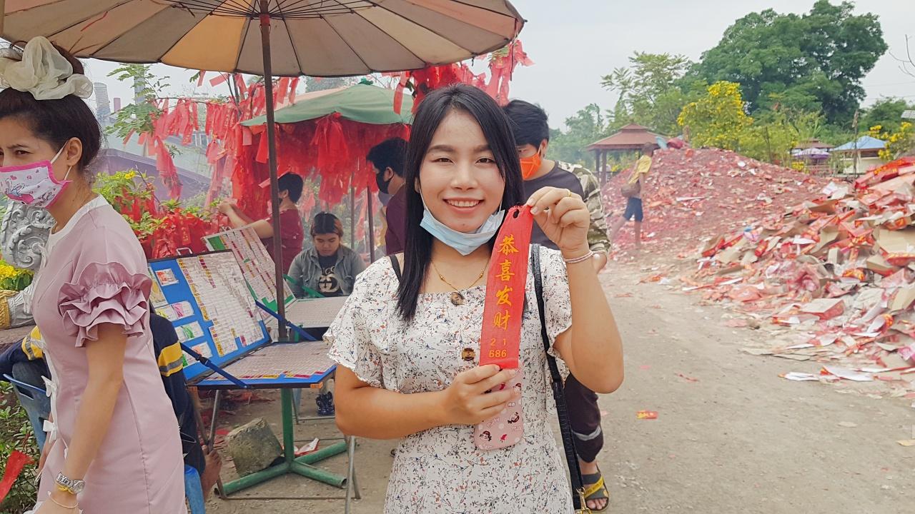 น.ส.ชนิสรา เล่าอีกว่า สำหรับวันนี้ ตนก็ขอโชคลาภอีก ขอให้ได้โชคใหญ่ จะนำประทัดมาจุดแสนนัด ถวายน้ำแดง รถเด็กเล่น และจะมาทำบุญให้อาจารย์แป๊ะด้วย จากนั้นก็นำประทัดไปจุด และนำหางเลขประทัดไปเสี่ยงโชค โดยได้เลขหางประทัด 21 และ 686