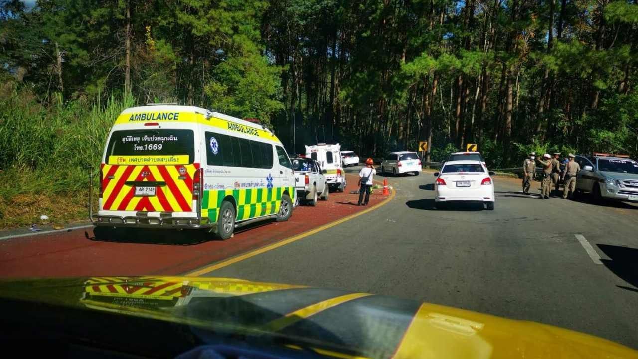 จากอุบัติเหตุ เมื่อเวลา 12.50 น. วันที่ 20 พ.ย. พ.ต.ต.สยาม อินทร์น้อย พนักงานสอบสวน สภ.จอมทอง จ.เชียงใหม่ รับแจ้ง รถยนต์นักท่องเที่ยวเสียหลักพลิกคว่ำบนเส้นทางบริเวณกิโลเมตรที่ 31 ทางขึ้นดอยอินทนนท์ อ.จอมทอง มีผู้เสียชีวิต 5 ศพ