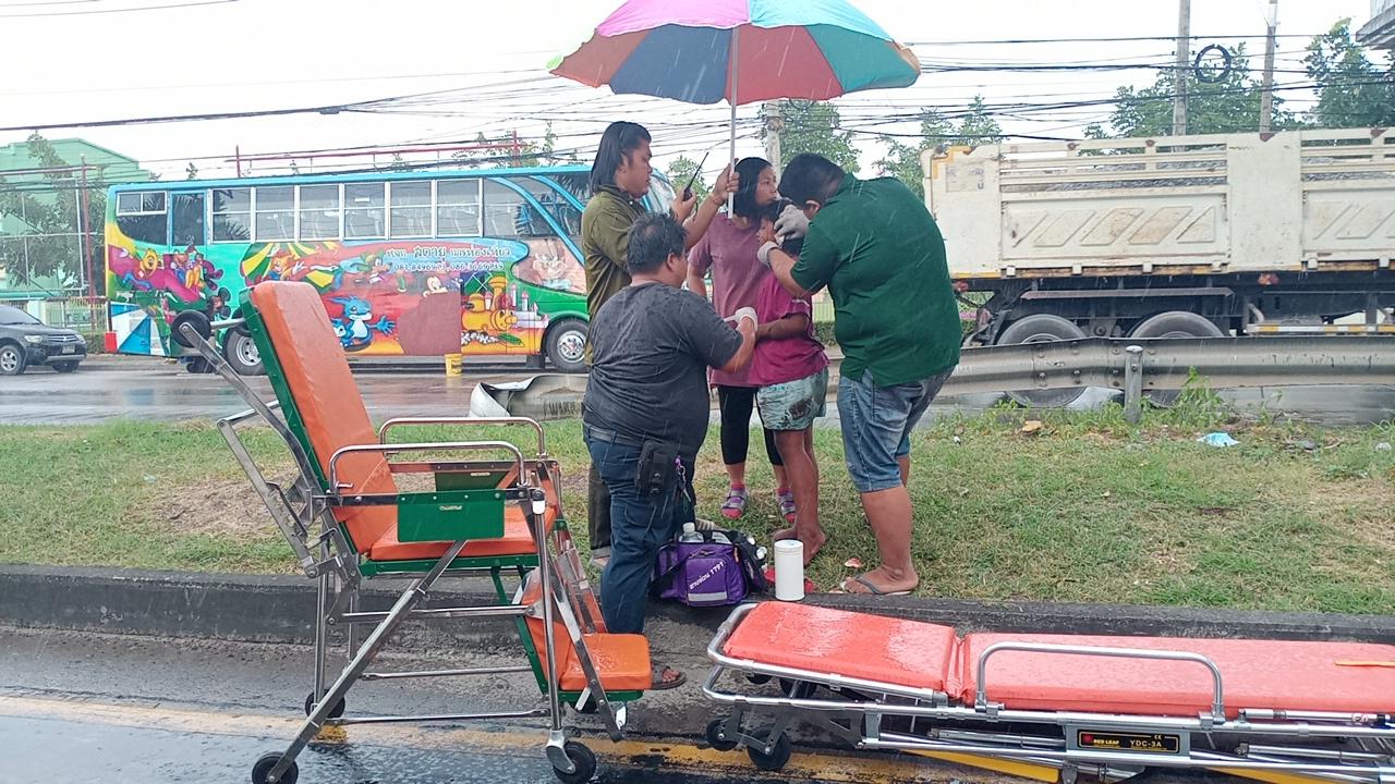สลด! แม่ลูกขี่ จยย.จะออกมาเติมเงินโทรศัพท์โครงการคนละครึ่ง จอดติดไฟแดงถูกรถบรรทุกปูน 22 ล้อวิ่งทับแม่ดับ ส่วนลูกวัย 6 ขวบบาดเจ็บ โชเฟอร์อ้างมองไม่เห็น