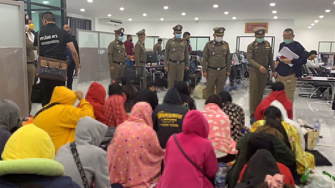 พล.ต.อ.ดำรงศักดิ์ กิตติประภัสร์ รอง ผบ.ตร. พล.ต.ต.ไตรรงค์ ผิวพรรณ รอง ผบช.ภ.6 นำกำลังตำรวจ ศปอส.ตร.เข้าตรวจ ค้น 4 จุดทั่วประเทศ ทลาย เครือข่ายเว็บไซต์พนันออนไลน์ Lucabet 888 ในภาพเป็นออฟฟิศที่ตั้งอยู่ใน อ.อรัญประเทศ จ.สระแก้ว จับกุมพนักงานหน้าจอคอมพิวเตอร์ ขณะ แชตคุยกับลูกค้าได้ 76 คน ของกลางจำนวนมาก.