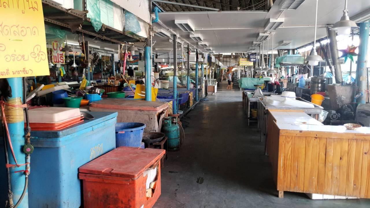 บรรยากาศที่ตลาดทะเลไทยสมุทรสาคร ตลาดค้าส่งอาหารทะเลปิดแพหมด ส่วนตลาดสดที่จำหน่าย อาหารทะเล อาหารแห้ง และผลไม้ เงียบมาก ร้านค้าปิดตัวไปเป็นจำนวนมาก หลังข่าวโควิดออกไป คนไม่กล้ามาเดิน