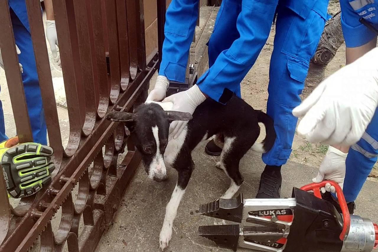 ด้านเจ้าหน้าที่กู้ภัยคาดว่า สุนัขตัวดังกล่าวอาจเป็นสุนัขที่หลงทางมา แล้วพยายามจะเข้าไปหลบในบ้านหลังดังกล่าว แต่ประตูปิดอยู่ เลยพยายามมุดช่องประตูเข้าไป ทำให้หัวของสุนัขที่มีตัวใหญ่กว่าช่องประตู ติดอยู่กับช่องประตูเหล็ก โดยเจ้าหน้าที่กู้ภัยใช้อุปกรณ์เครื่องมือตัดถ่าง ตัดเหล็กบริเวณที่สุนัขติดอยู่ออก จึงสามารถช่วยเหลือสุนัขออกมาได้อย่างปลอดภัย.