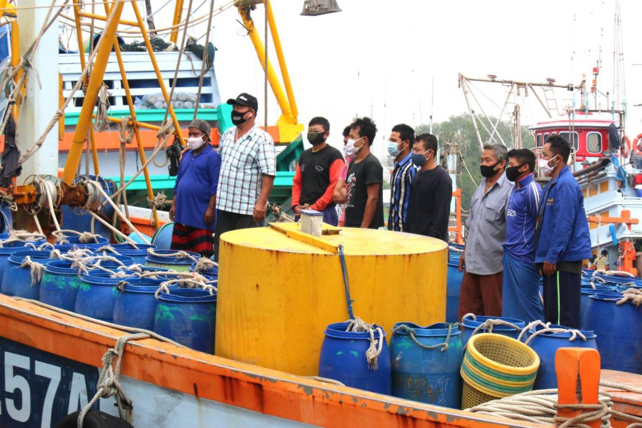 หลังจากที่ลูกเรือประมงได้รับการตรวจค้นหาเชื้อแล้ว จะออกไปทอดสมอ ลอยลำอยู่ที่ปากแม่น้ำท่าจีน เพื่อรอรับผลการตรวจ โดยจะมีเรือ ต.267 จาก ศรชล.เขต1 คอยดูแล ซึ่งหลังจากทราบผลตรวจเรียบร้อยแล้ว เรือประมงที่ไม่พบผู้ติดเชื้อ จะสามารถทำการประมงได้เป็นปกติ และจะสามารถเทียบท่าเพื่อขนถ่ายสัตว์ทะเลเพียงเท่านั้น แต่จะไม่สามารถกลับขึ้นฝั่งได้ เพื่อเป็นการลดความเสี่ยงในการสัมผัสหรือใกล้ชิดกับแรงงานที่อยู่ทางบก จนกว่าสถานการณ์จะคลี่คลาย" รอง ผอ.ศรชล.จ.สมุทรสาคร กล่าว.