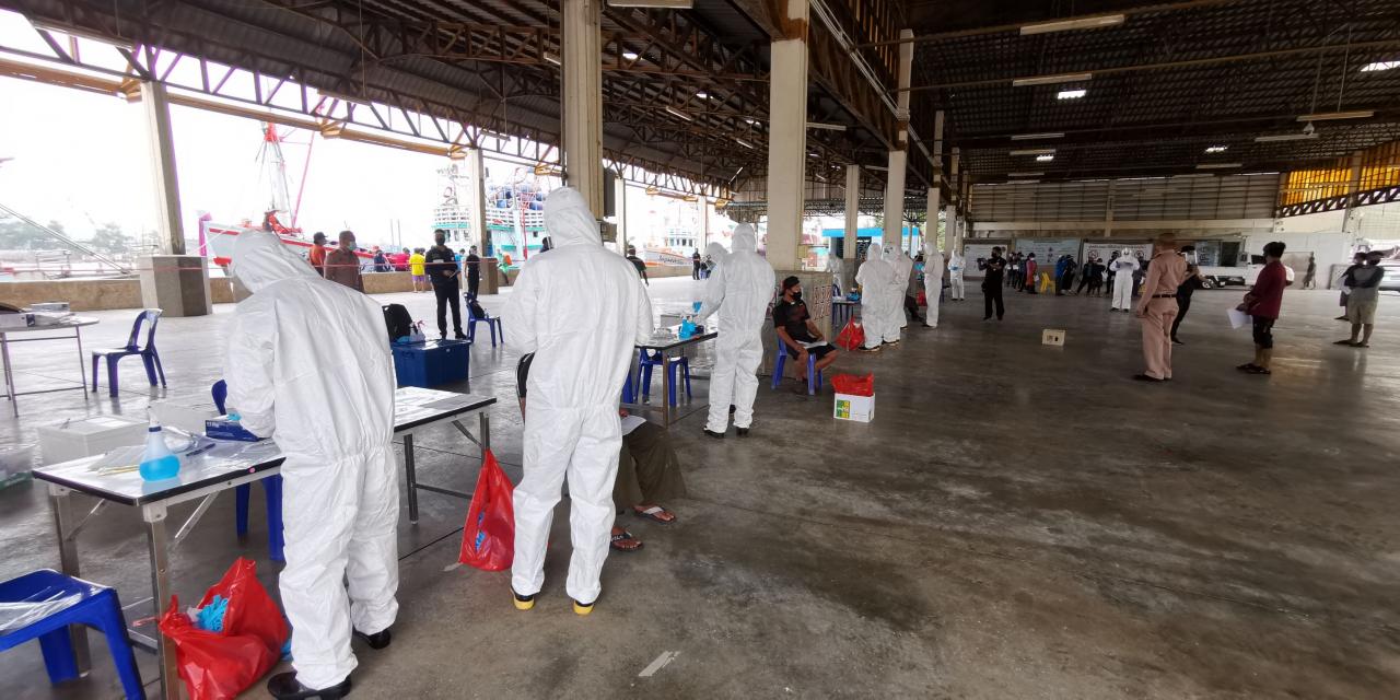 โดยกำหนดเป้าหมายการตรวจคัดกรองฯ วันละ 500 ราย ตั้งแต่ 25-29 ธ.ค.63 ณ บริเวณลานขนถ่ายสัตว์น้ำ องค์การสะพานปลา จว.สมุทรสาคร โดยในวันนี้สามารถตรวจหาเชื้อจากเรือประมง 14 ลำ แรงงานประมง แรงงานท่าเทียบเรือ และแรงงานแพปลา รวมทั้งสิ้น 402 คน