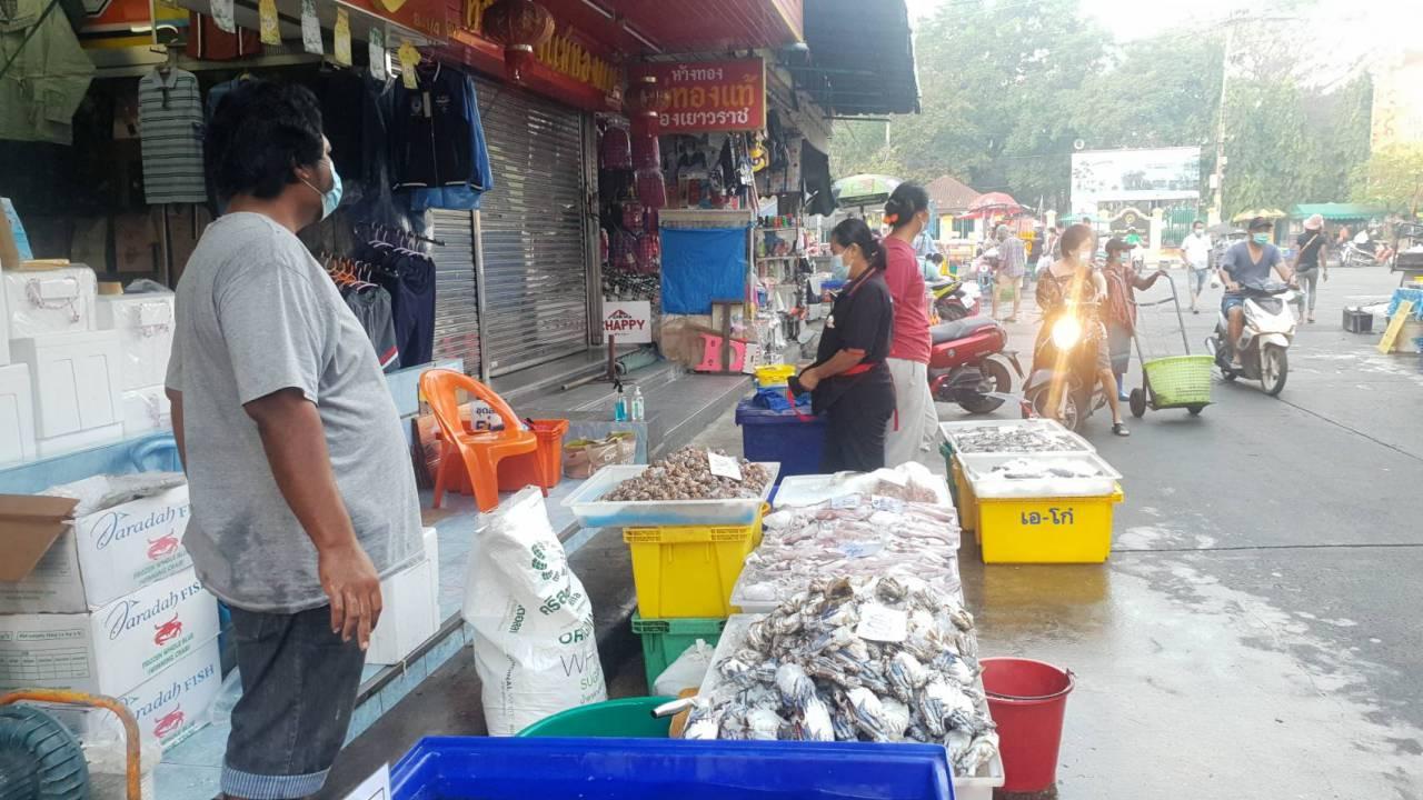 ด้านนางสาวมณฑิตา บุญอินทร์ อายุ 37 ปี แม่ค้าขายอาหารทะเล บอกว่า สถานการณ์โควิด-19 ทำให้บางร้านหยุดไปมากเพราะซื้อของมาแล้วไม่รู้จะขายใคร เอามาขายก็ขาดทุน อีกทั้งขายได้ไม่เต็มเวลา เพราะตลาดเปิด 05.00-12.00 น. รวมทั้งลูกค้าจากต่างจังหวัดก็ไม่มีมีแต่คนในพื้นที่เท่านั้น.