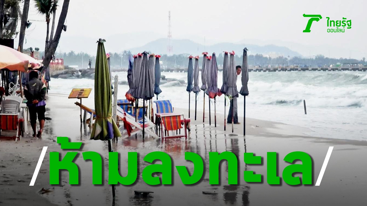 อุตุฯ เตือนทะเลฝั่งอ่าวไทย มีคลื่นสูง 2-3 เมตร "หัวหิน" ปักธงแดง ห้ามลงเล่นน้ำ หลังคลื่นลมแรง น้ำทะเลหนุนถึงฝั่ง พร้อมย้ำนักท่องเที่ยว สวมหน้ากากอนามัย ขณะเข้าชายหาด