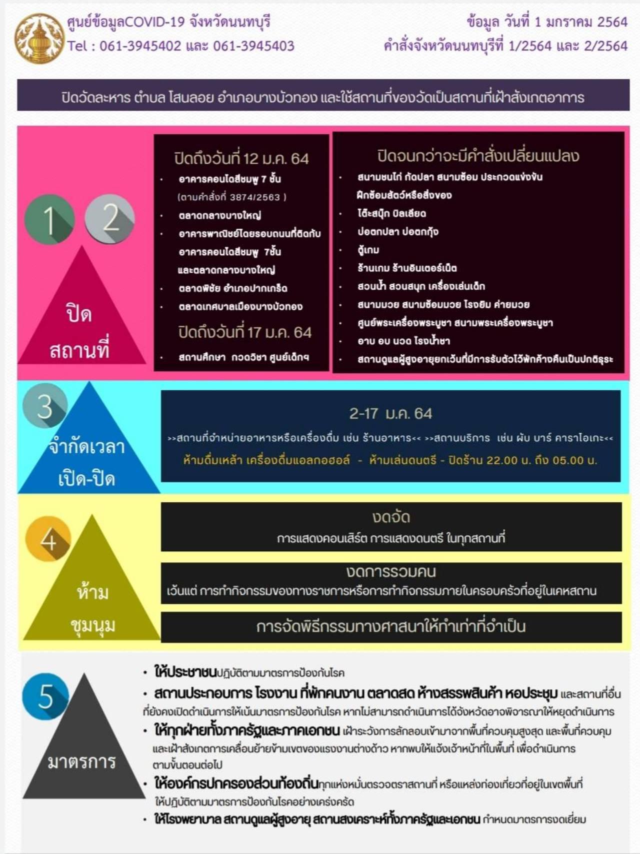 ทั้งนี้ การออกคำสั่งและประกาศของจังหวัดทุกฉบับคำนึงถึงการป้องกันโรคควบคู่ไปกับสภาวะทางเศรษฐกิจ และความเป็นอยู่ของประชาชนในจังหวัดนนทบุรี