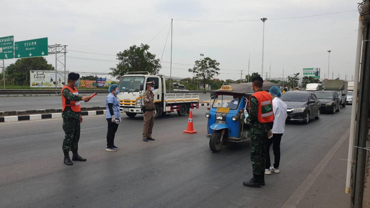 สมุทรสาคร ตั้งจุดตรวจ จุดคัดกรองเข้ม 9 จุดถนนสายสำคัญของจังหวัด โดยมี จนท.สธ. ทหาร ตำรวจ ฝ่ายปกครองบูรณาการร่วมกัน เพื่อตรวจวัดอุณหภูมิผู้ที่ผ่านเข้าออกตามมาตรการป้องกันการแพร่ระบาด