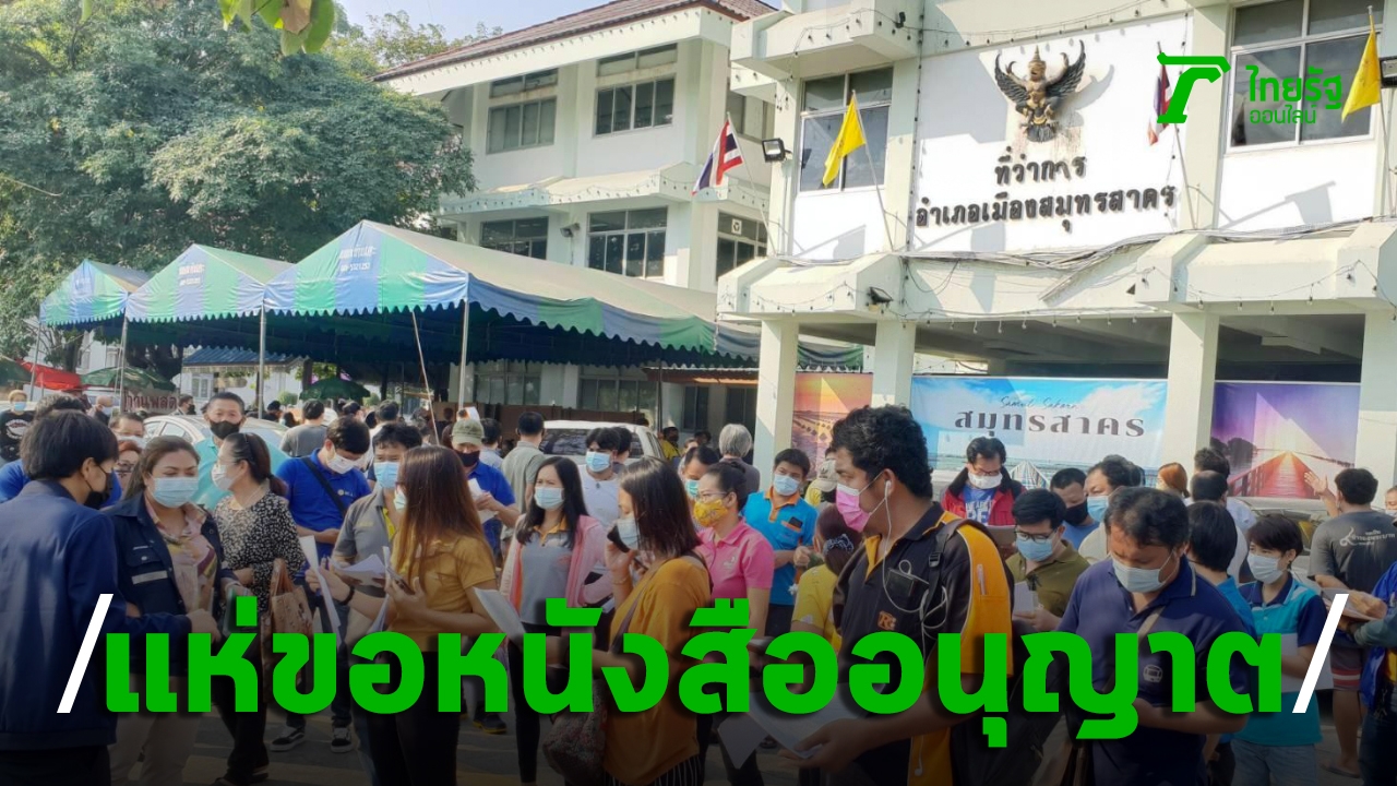 คนแห่มาทำหนังสืออนุญาตออกนอกจังหวัด เต็มที่ของที่ว่าการ อ.เมืองสมุทรสาคร ขณะที่นายอำเภอต้องทำความเข้าใจ ด้านรองผู้ว่าฯ แจง คนทำงานให้ขอแบบไปเช้าเย็นกลับ และจะขยายให้ขอที่เทศบาล, อบต.ได้ด้วย