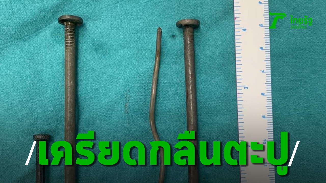 โดยผู้ป่วยคนดังกล่าวได้มาพบแพทย์ที่รพ.ดำเนินสะดวก ด้วยอาการปวดท้องอย่างทรมานโดยไม่ทราบสาเหตุ ทางแพทย์จึงนำตัวเข้าห้องเอกซเรย์ จนพบว่า มีตะปูยาว 4 นิ้ว และตะปูยาว 2 นิ้ว ติดค้างอยู่บริเวณกระเพาะอาหารด้านขวา ส่วนบริเวณลำไส้ใหญ่ด้านซ้าย มีตะปูขนาด 4 นิ้ว และลวดเหล็กยาว 4 นิ้ว ติดอยู่ จึงรีบนำคนไข้เข้าห้องผ่าตัดทันที ทีมแพทย์ต้องใช้เวลาเกือบ 1 ชั่วโมง จนสามารถผ่าตัดนำตะปูและลวดออกมาจากตัวคนไข้ได้อย่างปลอดภัย