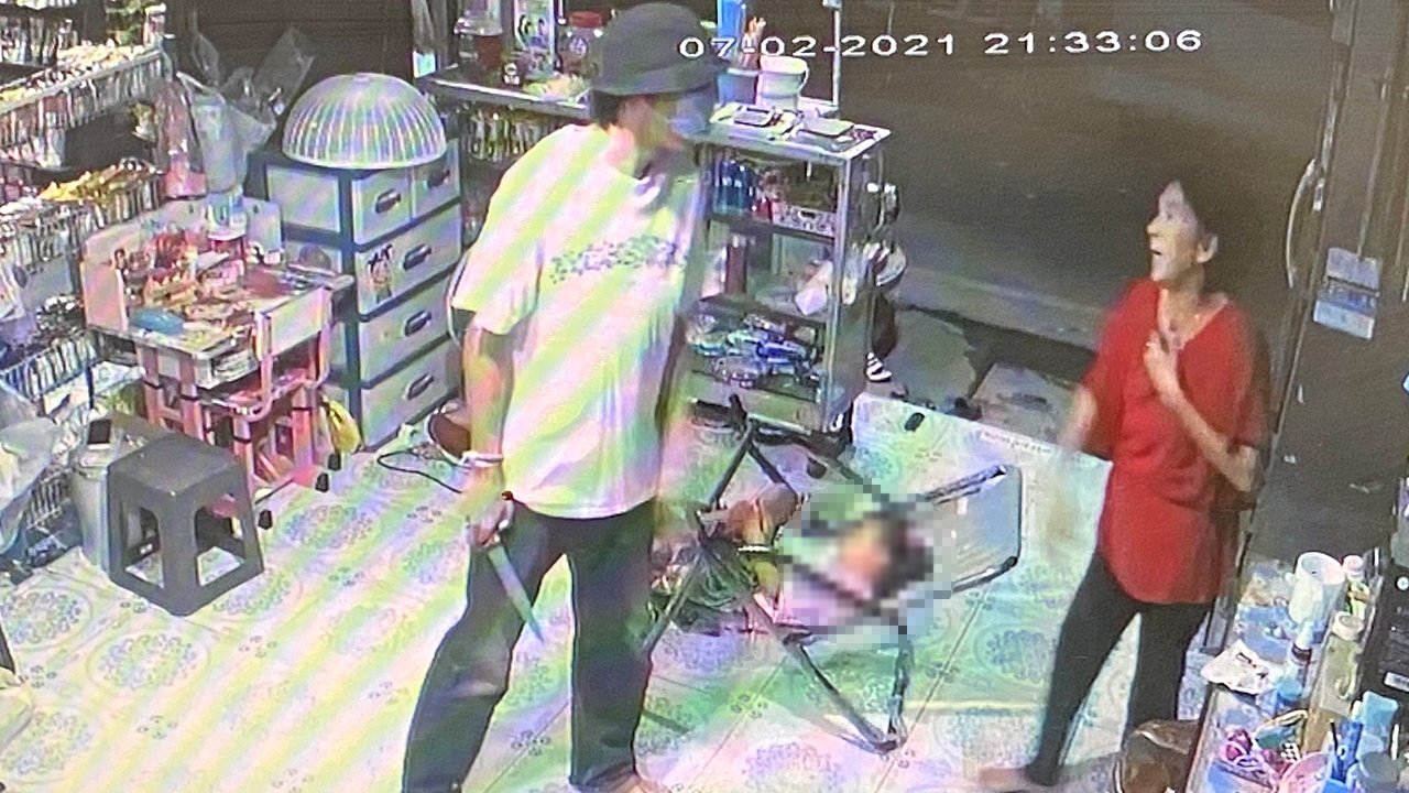 ภาพวงจรปิดขณะนายจักรพัฒ หรือเบนซ์ บุญลือ อายุ 25 ปี บุกใช้มีดจี้ชิงทองหนัก 2 บาทจากนางบุญส่ง จินตนานุช อายุ 66 ปี เจ้าของร้านขายของชำ เลขที่ 95/32 หมู่ 2 ต.บางพูน อ.เมืองปทุมธานี แต่เหยื่อขัดขืนร้องให้คนช่วย ทำให้คนร้ายไม่ได้ของกลาง ก่อนถูกตำรวจตามรวบตัวได้.