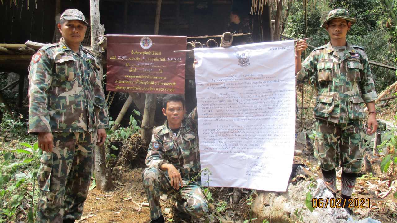"ในวันนี้เจ้าหน้าที่ชุดดังกล่าว ได้กลับออกมารายงานผลการปฏิบัติการว่า เมื่อเข้าไปตรวจพิสูจน์ทราบเพิงพักหนึ่งหลังตามเป้าหมาย ภายในพบซากหัวกะโหลกเลียงผาจำนวน 2 ซากกะโหลก หมูป่า(กรามล่าง) จำนวน 1 ชิ้น ซากหนังและขนค่างจำนวน 2 ชิ้น บริเวณใกล้เคียงตรวจพบแปลงบุกรุก 1 แปลง เนื้อที่ประมาณ 3 ไร่ เจ้าหน้าที่ได้รวบรวมหลักฐานทำบันทึกการตรวจยึดจับกุม แจ้งความกล่าวโทษ นำส่งพนักงานสอบสวน สภ.แก่งกระจาน จ.เพชรบุรี"
