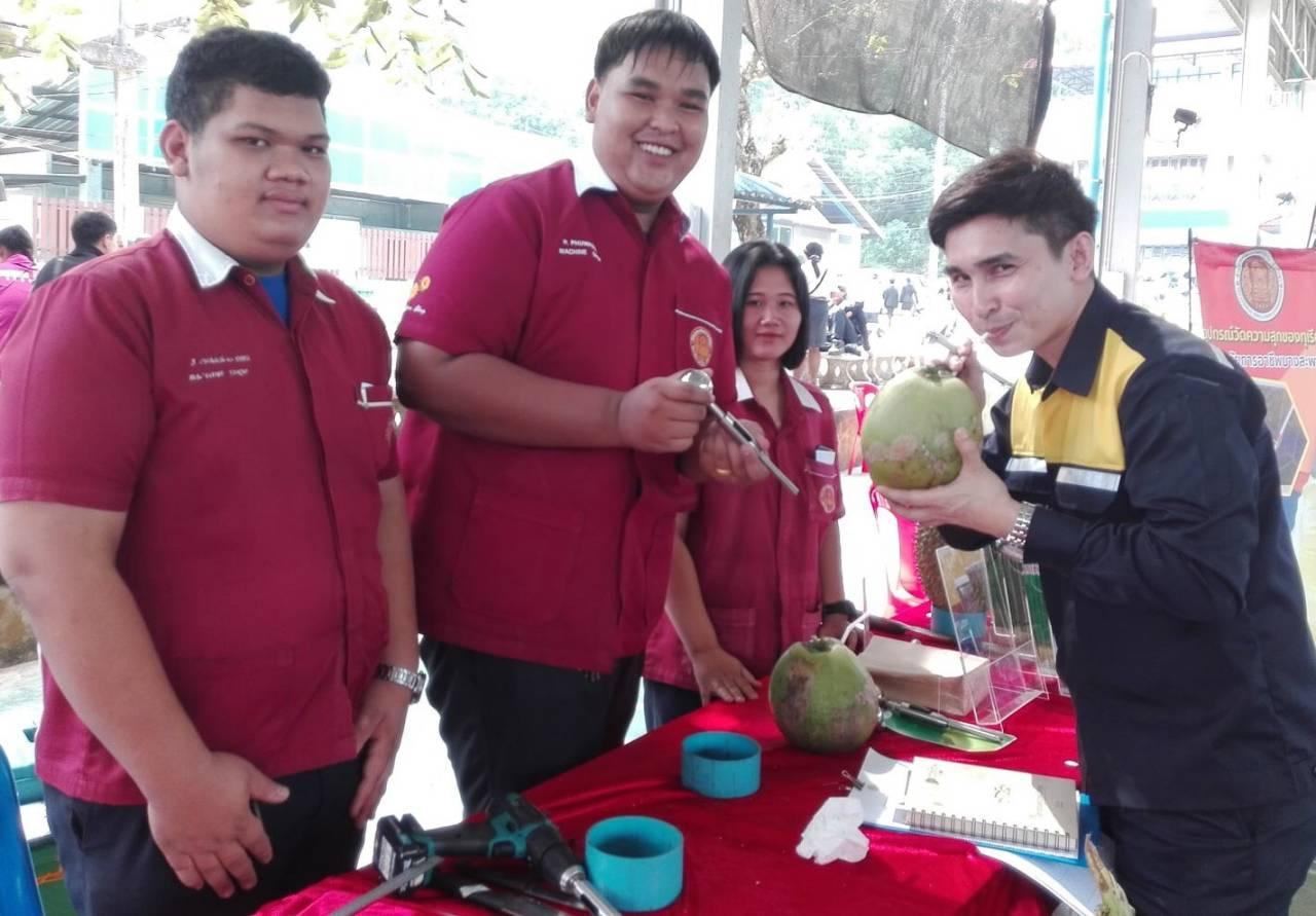 วิทยาลัยการอาชีพบางสะพาน แนะนำผลงานประดิษฐ์นักศึกษา เอาใจคนชอบดื่มน้ำมะพร้าว กับ ที่เจาะมะพร้าวอ่อนแฮนด์เมด เจาะ 3 วินาทีเสียบหลอดดูดเข้าปากได้ทันที ลดอันตรายจากการใช้มีดผ่ามะพร้าวทำบาดเจ็บ