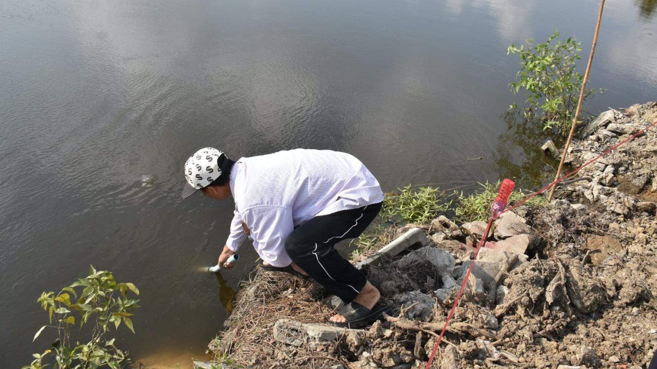 เช่นเดียวกับนายสุวัฒน์ กาญจนวาหะ อายุ 58 ปี เป็นอีกหนึ่งในผู้ได้รับความเดือดร้อน ได้รับผลกระทบจากน้ำเค็มที่ไหลลงสู่แม่น้ำท่าจีนมากกว่าปกติ ได้นำเครื่องวัดระดับความเค็ม โดยตักน้ำจากแม่น้ำท่าจีนขึ้นมาวัดค่า