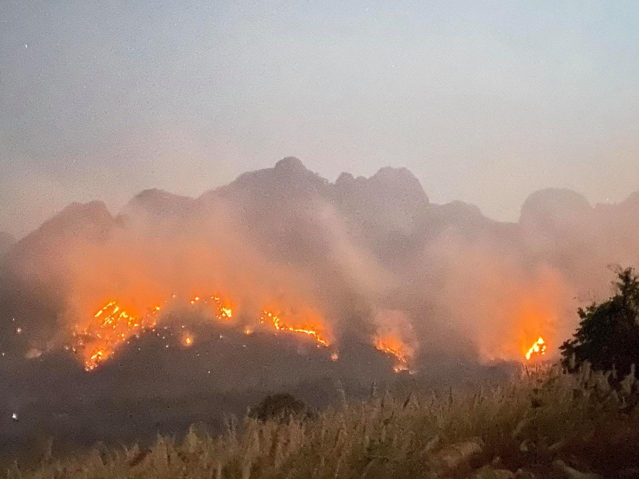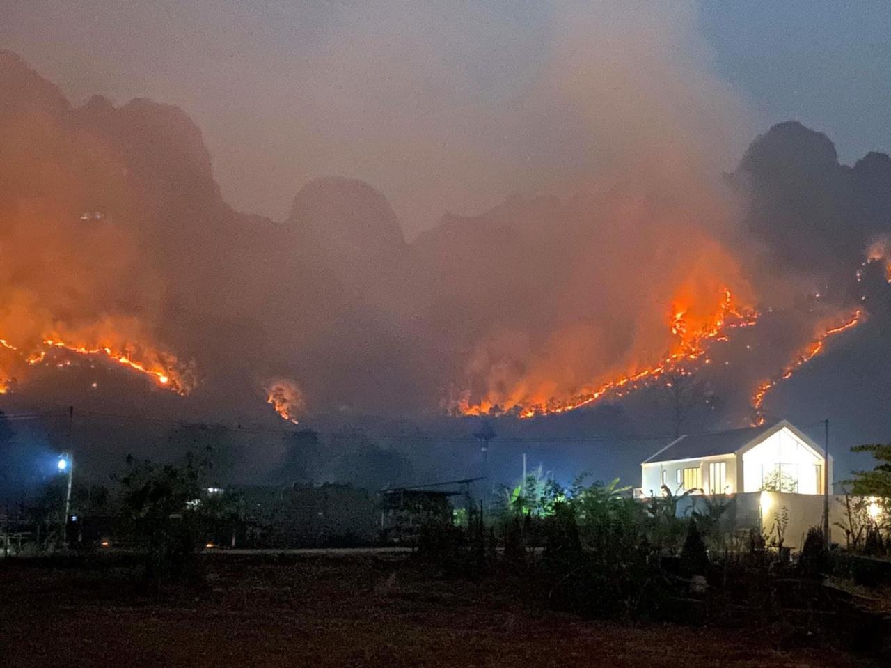 ไฟป่าที่ลุกไหม้บนยอดเขาสูงในพื้นที่ อ.สังขละบุรี ยังไม่ดับจนถึงวันนี้ เพราะแต่ละจุดยากต่อการเข้าไปดับไฟ คุณภาพอากาศกระทบกลุ่มผู้อ่อนไหว สธ.สังขละบุรี เตือนออกบ้านควรใส่หน้ากากนอภ.ย้ำงดเผา