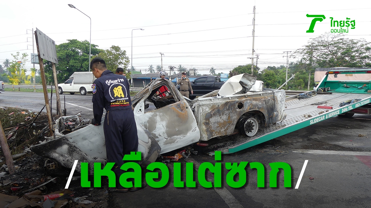 ที่เกิดเหตุ พบรถยนต์กระบะยี่ห้อโตโยต้า สีขาว หมายเลขทะเบียน บษ 977 พระนครศรีอยุธยา จอดอยู่ที่เกิดเหตุได้รับความเสียหายไฟลุกท่วมทั้งคัน โดยมีเจ้าหน้าที่ดับเพลิงช่วยดับเพลิง เนื่องจากรถยนต์กระบะคันดังกล่าวได้บรรทุกสารเคมีชนิดกระป๋อง เป็นยาฉีดยุง และน้ำยาต่างๆ มาเต็มคันรถ ทำให้สารเคมีชนิดกระป๋องตกอยู่เต็มท้องถนนและเกิดระเบิดขึ้นเป็นระยะ จนท.จึงได้ช่วยกันเคลียร์พื้นที่และเปิดการจราจร