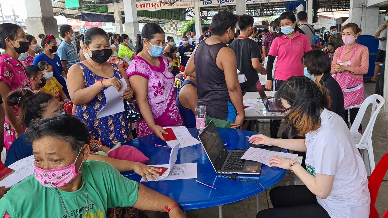 เจ้าหน้าที่กรมวิทยาศาสตร์การแพทย์เข้ามาเก็บตัวอย่างเลือดคนไทยและแรงงานข้ามชาติในตลาดกลางกุ้งมหาชัย จ.สมุทรสาคร เป็นครั้งที่ 2 เพื่อนำไปตรวจหาภูมิคุ้มกันโรคโควิด-19 หลังเก็บตัวอย่างครั้งแรกเมื่อต้น ก.พ. เพื่อศึกษาปัจจัยที่ทำให้ผู้ติดเชื้อมีอาการป่วยแตกต่างกัน.