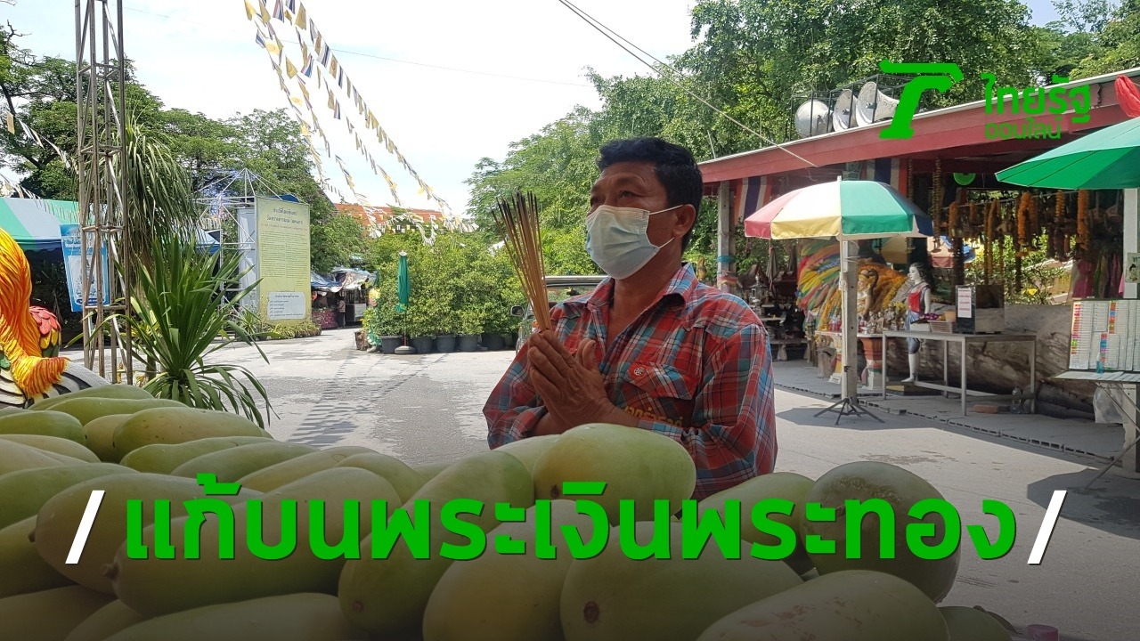 ลุงชาวสวนนครชัยศรี หอบฟักพันลูกและไข่ไก่ 3 พันฟองถวายแก้บน พระเงินพระทอง วัดสว่างอารมณ์ หลังช่วยให้ปลดหนี้สำเร็จ จากการที่ขายผลผลิตได้มีลูกค้ารายใหญ่มาซื้อ ไม่ต้องนำผลผลิตที่ขายไม่ออกไปทิ้ง
