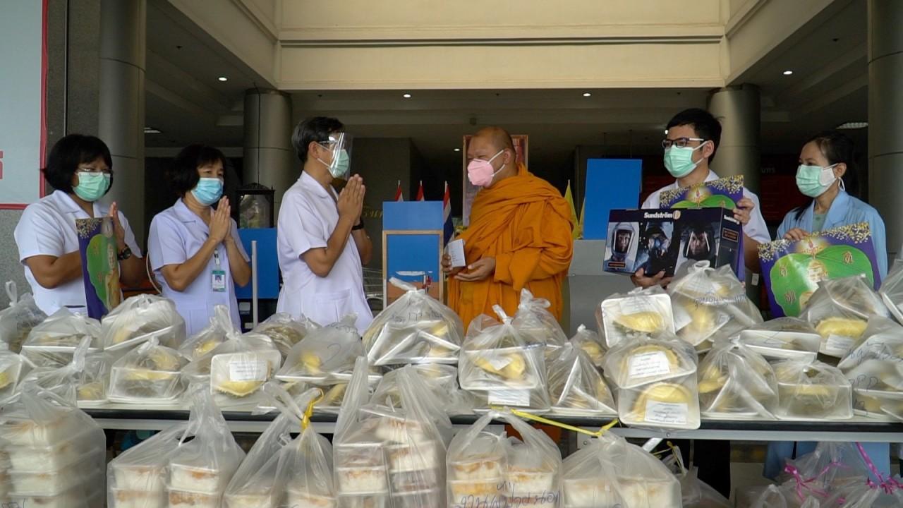 เจ้าอาวาสวัดโพธารามและลูกศิษย์ นำปัจจัยมามอบแก่บุคลากรทางการแพทย์ รพ.ชัยนาทนเรนทร เพื่อซื้อชุด PPE พร้อมมอบอาหาร และทุเรียนแกะเนื้อเหลืองผ่องส่งกลิ่นอบอวล จนต้องมาแวะกินก่อนไปขึ้นวอร์ดทำงาน