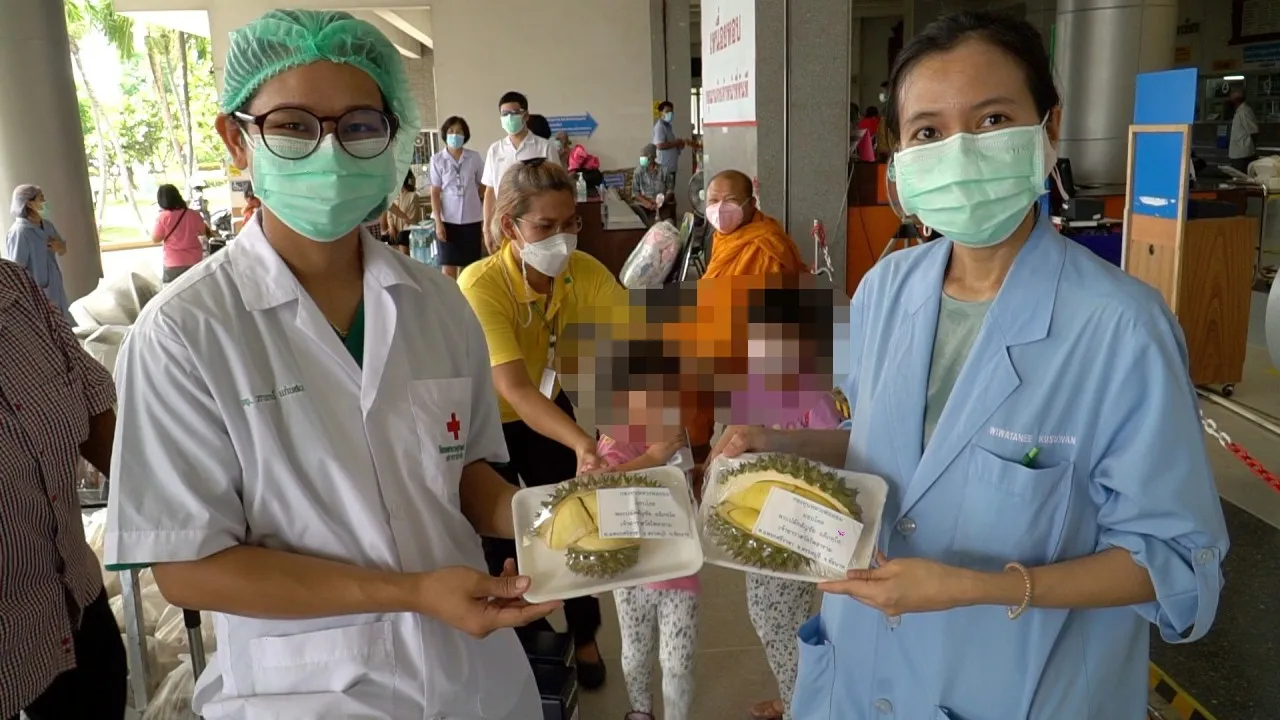 ระหว่างรับมอบ กลิ่นทุเรียนที่แกะเนื้อใส่ถาดโฟม 200 กิโลกรัมนั้น ตลบอบอวล หอมยั่วน้ำลายไปทั่วอาคารผู้ป่วยนอก ภายหลังจากเสร็จพิธี มีหมอและพยาบาลที่ต้องรีบไปรักษาคนไข้ต่ออดใจไม่ไหว แกะทุเรียนกินกันสดๆ แล้วรีบไปทำงานต่อ ด้วยท่าทางสุดฟิน กินอย่างเอร็ดอร่อย