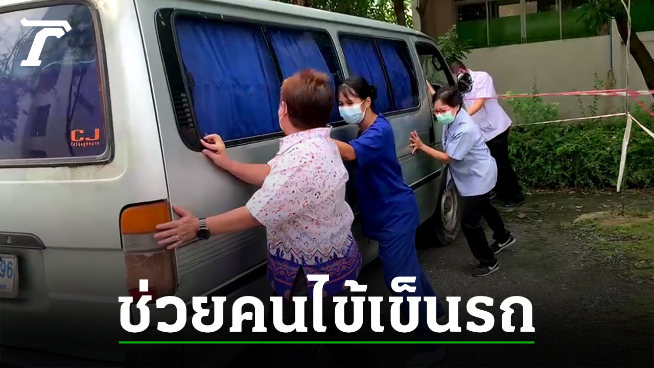 ภาพประทับใจกับหมอ พยาบาล รพ.สมเด็จพระสังฆราชองค์ที่ 17 ช่วยกันดันท้ายรถยนต์ ผู้ป่วยโควิด-19 ที่มารักษาตัว 14 วัน จนหายดีแล้ว แต่แบตเตอรี่เสื่อมรถสตาร์ตไม่ติดเพราะจอดทิ้งไว้นาน