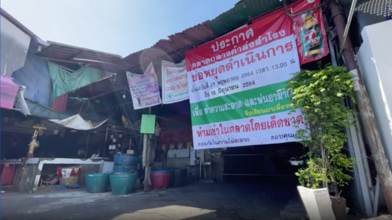 ส่วนบรรยากาศที่ตลาดกลางค้าส่งสำโรง ผู้ประกอบการตลาดได้นำป้ายมาติดประกาศบริเวณทางเข้าหน้าตลาด โดยมีข้อความว่า หยุดดำเนินการ ตั้งแต่วันที่ 27 พ.ค. - 10 มิ.ย.64 และได้นำรั้วมาปิดทางเข้าออก เพื่อไม่ให้ผู้ไม่เกี่ยวข้องเข้าไปในตลาดโดยเด็ดขาด พร้อมกันนี้ยังได้จัดเจ้าหน้าที่เข้ามาทำความสะอาด และพ่นยาฆ่าเชื้อในตลาดเป็นประจำทุกวัน เพื่อสร้างความมั่นใจให้กับผู้มาใช้บริการ ขณะที่บริเวณตลาดใหม่สำโรง ซึ่งอยู่ใกล้กัน พบว่ายังเปิดดำเนินการตามปกติ