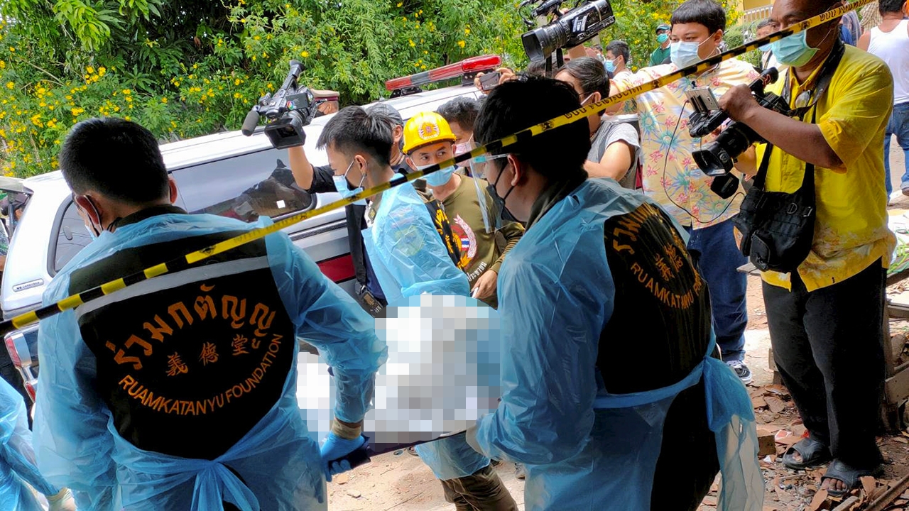 ที่เกิดเหตุเป็นบ้านชั้นเดียวอยู่ริมถนนทางเข้าหมู่บ้านหนองปลาไหล บริเวณหน้าบ้านมีวัสดุสิ่งของเศษอะลูมิเนียม และแผ่นกระจกกระจัดกระจายไปทั่วบ้าน ภายในบ้านมีกลิ่นเหม็นโชยออกมา ที่ห้องนอนพบกองปูนขาวขนาดกว้าง 1 เมตร ยาว 2 เมตร ถูกโบกปิดทับร่างผู้เสียชีวิตอยู่มีคราบน้ำเหลืองเกรอะกรังติดที่ปูน แผ่นไม้กระดานวางกั้นเป็นรูปสี่เหลี่ยมผืนผ้าเท่าตัวคน ทำเป็นบล็อกกั้นไม่ให้ปูนขาวไหลออกมา เจ้าหน้าที่ใช้ชะแลงงัดและค้อนปอนด์ทุบปูนขาวที่โบกทับไว้ออก พบศพชายสภาพร่างเน่าเปื่อย ไม่ใส่เสื้อ สวมกางเกงยีนส์คาดเข็มขัดหนังสีน้ำตาล นอนคว่ำหน้ามีผ้าห่มและผ้าปูที่นอนห่อร่างไว้ ใกล้กันพบจอบด้ามไม้ยาว 1.50 เมตร กระบะพลาสติกผสมปูน 1 ใบ แผ่นไม้กระดาน และประตูพลาสติก เจ้าหน้าที่เก็บไว้เป็นหลักฐาน ส่วนศพมอบให้มูลนิธิฯนำส่ง รพ.ธรรมศาสตร์เฉลิม–พระเกียรติ จ.ปทุมธานี เพื่อชันสูตรศพอย่างละเอียด