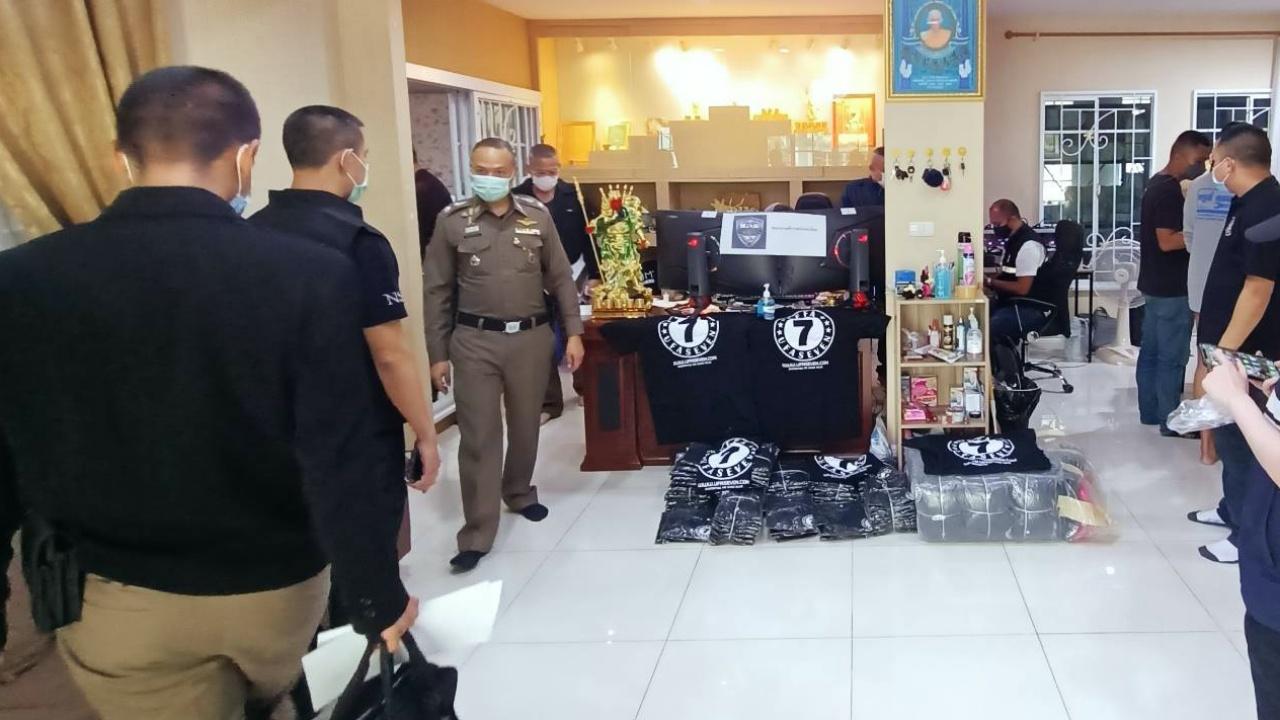 โดยสถานที่ดังกล่าวเปิดให้พนักงานคนกลางให้บริการ ระหว่างเว็บไซต์พนันกับผู้เล่นทางอินเทอร์เน็ตออนไลน์ เป็นฝ่ายการตลาด ติดต่อชักชวน ลูกค้า เยาวชน และประชาชนทั่วไป ให้แทงพนันฟุตบอลออนไลน์ (ในช่วงบอลยูโร) กาสิโนออนไลน์ สล๊อตออนไลน์ หวยออนไลน์ ไก่ชน มวยสเตป อีสปอร์ต ผ่านช่องทางการสื่อสารออนไลน์ สื่ออิเล็กทรอนิกส์ต่างๆ เจ้าหน้าที่ตำรวจจึงนำหมายค้นจากศาลอาญาเข้าตรวจค้นสถานที่ จับกุมผู้ต้องหาจำนวน 13 คน ซึ่งขณะจับกุมกำลังอยู่ในระหว่างแชตคุยกับลูกค้า และยึดของกลาง 1.เงินสด จำนวน 4,400,000 บาท 2.สมุดบัญชีธนาคารต่างๆ รวม 20 เล่ม 3.ทองคำรูปพรรณหนึ่งเส้นน้ำหนัก 20 บาท 4.ทองคำรูปพรรณ 1 เส้น น้ำหนัก 5 บาท พร้อมพระเครื่องยอดนิยม 5 องค์ (ยังประเมินราคาไม่ได้) 5.รถยนต์ จำนวน 2 คัน 6.บัตรเอทีเอ็ม 16 ใบ 7.คอมพิวเตอร์แบบพกพา 3 เครื่อง 8.โทรศัพท์มือถือ 16 เครื่อง 9.จอคอมพิวเตอร์ 11 เครื่อง 10.คอมพิวเตอร์ตั้งโต๊ะ 11 เครื่อง รวม 11 รายการ มูลค่ากว่า 20 ล้านบาท