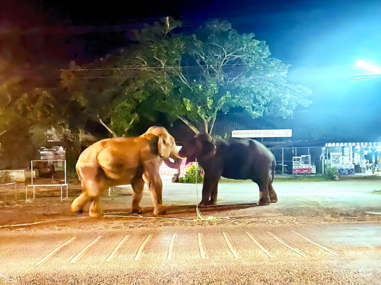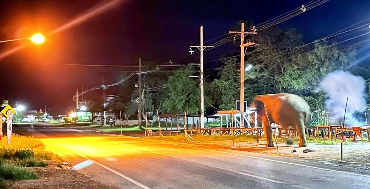 ชาวบ้านแจ้ง จนท.อช.แก่งกระจาน หลังช้างป่าหลายตัวมากินบริเวณตลาดนัดภายในหมู่บ้านเฉลิมเกียรติพัฒนา พลายบุญช่วยขาประจำเจอพลายบุญมี กลางถนนทักทายกัน ก่อนแวะขโมยอาหารแมวไปกิน 1 ถุงก่อนเดินเข้าป่า