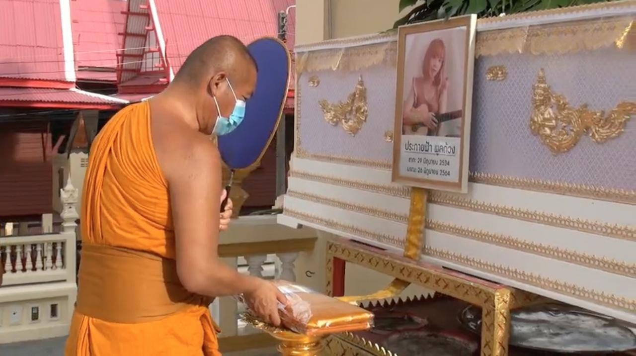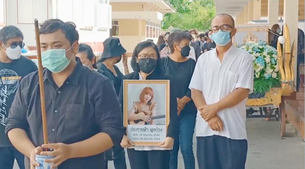 ญาติและครอบครัว น.ส.ประกายฟ้า พูลด้วง นักดนตรีอิสระ และยูทูบเบอร์ ทำพิธีฌาปนกิจที่วัดลาดสนุ่น จ.ปทุมธานี โดยมีเพื่อนๆ นักร้อง ศิลปินอิสระ คนในครอบครัว ร่วมอาลัยส่งนักร้องสาวเป็นครั้งสุดท้าย