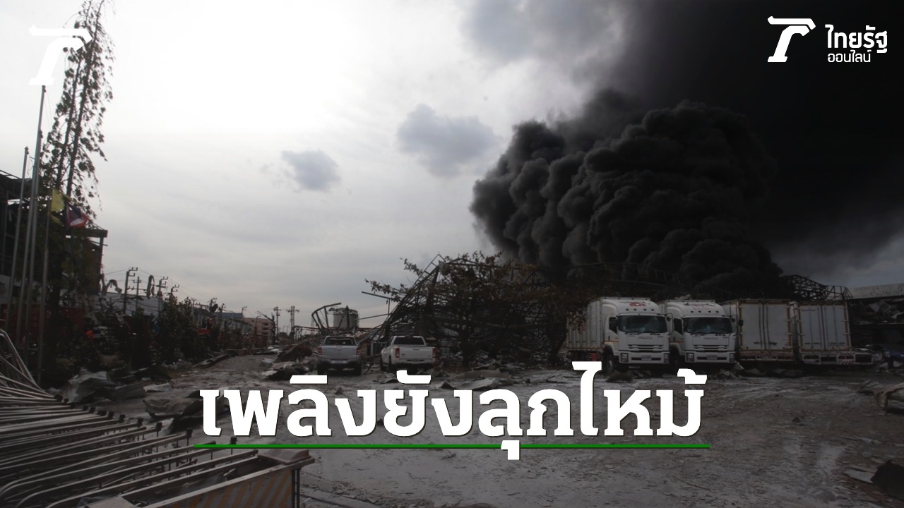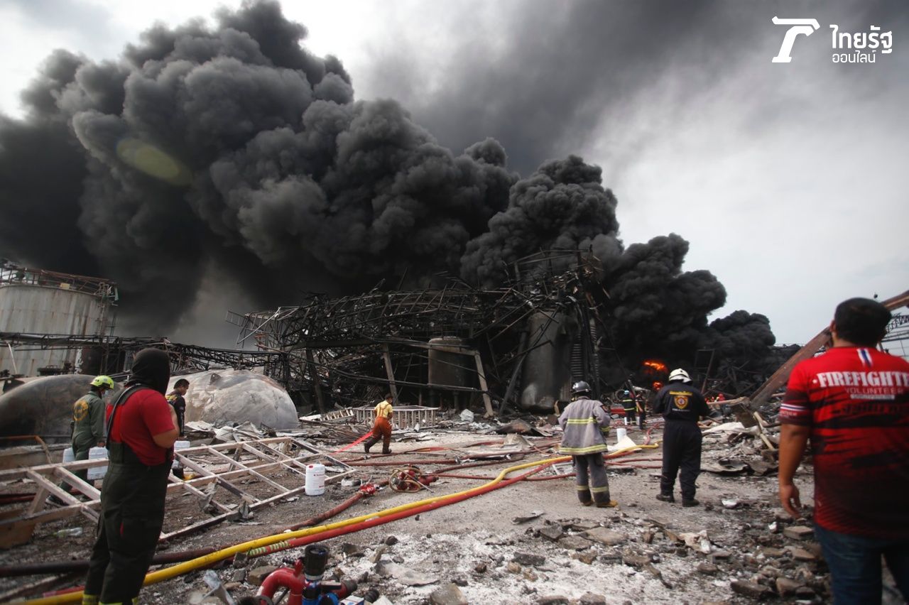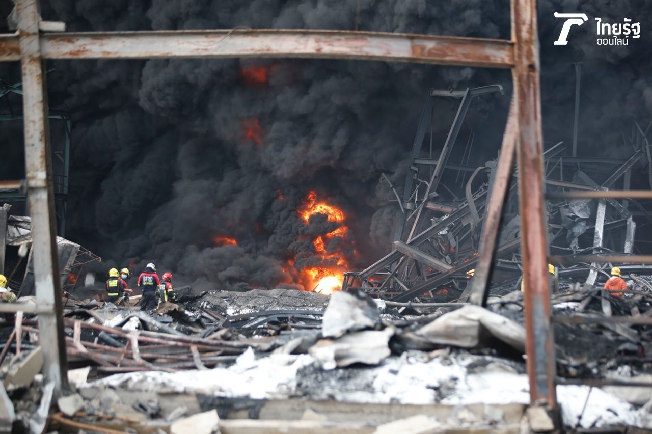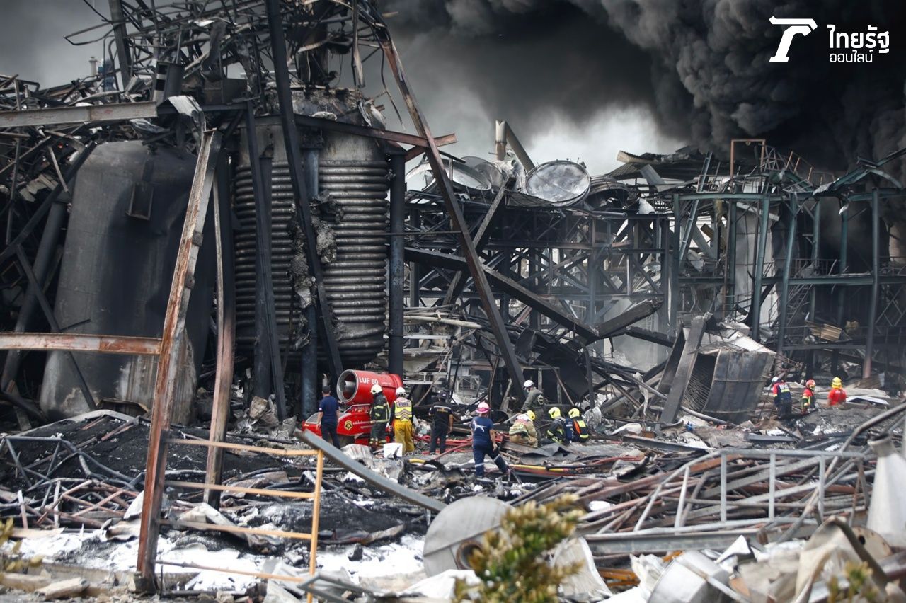 กว่า 15 ชม. เหตุไฟไหม้โรงงานกิ่งแก้ว เจ้าหน้าที่ใช้เฮลิคอปเตอร์โปรยโฟมต่อเนื่อง หลังไฟไหม้ถังเก็บสารเคมี แต่ยังคุมเพลิงไม่ได้ ควันดำพวยพุ่ง