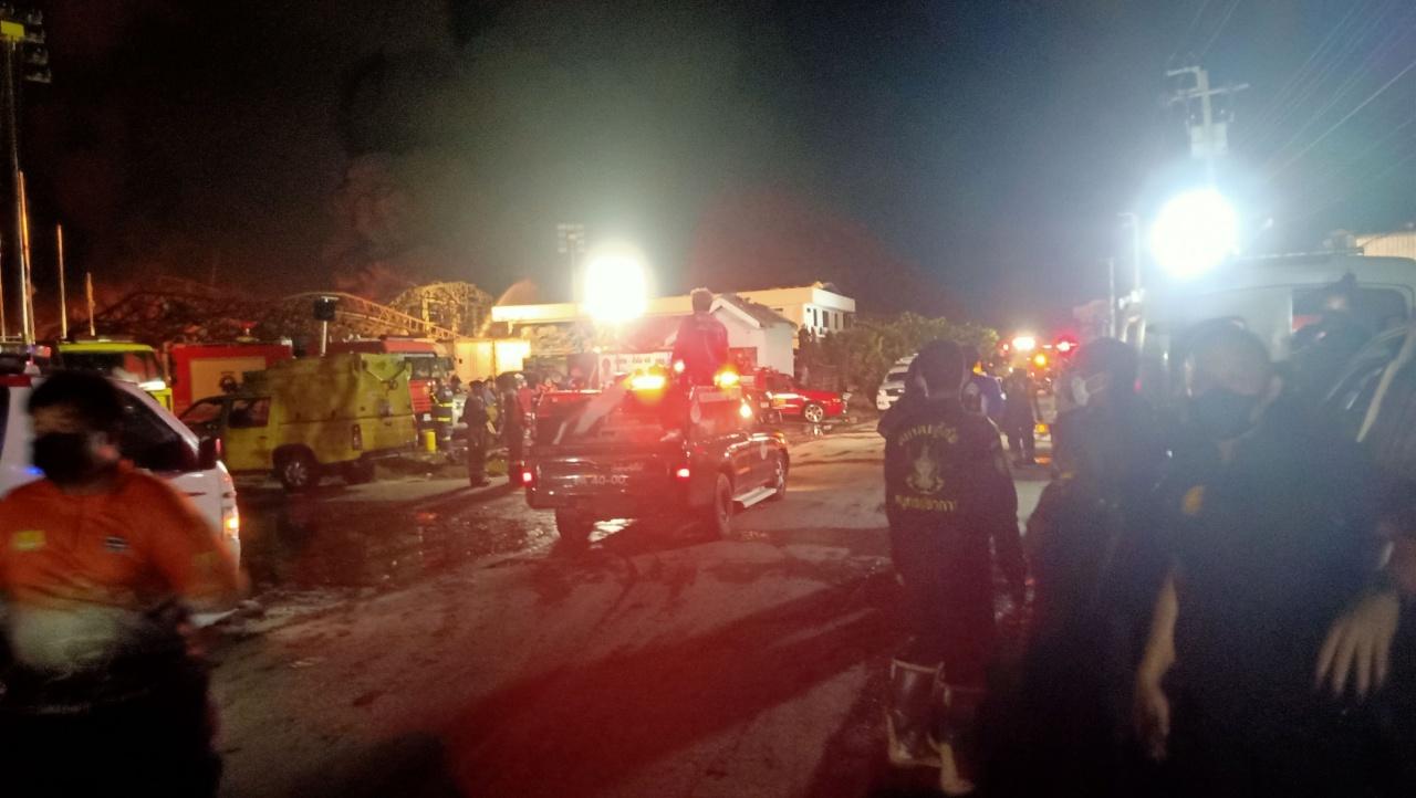 ยังระดมฉีดโฟม จำกัดเพลิง ไฟไหม้โรงงานกิ่งแก้วให้อยู่ในวงจำกัด รอจังหวะ ส่งนักผจญเพลิง 5 ทีม รวม 15 คน เข้าปิดวาล์วถังสารเคมีในบ่อ