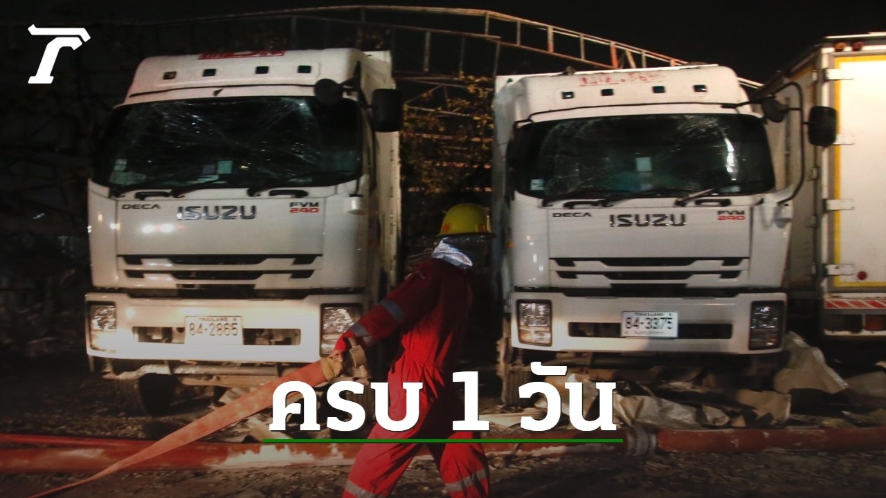 คุมเพลิงได้แล้ว เหตุตูมสนั่น ไฟไหม้โรงงานเม็ดพลาสติก ย่านกิ่งแก้ว หลัง จนท.ปฏิบัติงานทรหด 24 ชม.เต็ม ถอนทีมบางส่วน แต่ยังตรึงกำลัง จนท.-รถดับเพลิง สแตนด์บาย หวั่นปะทุซ้ำ
