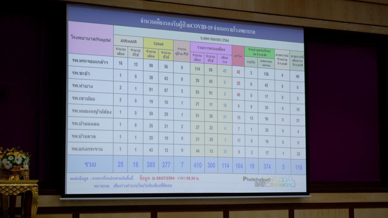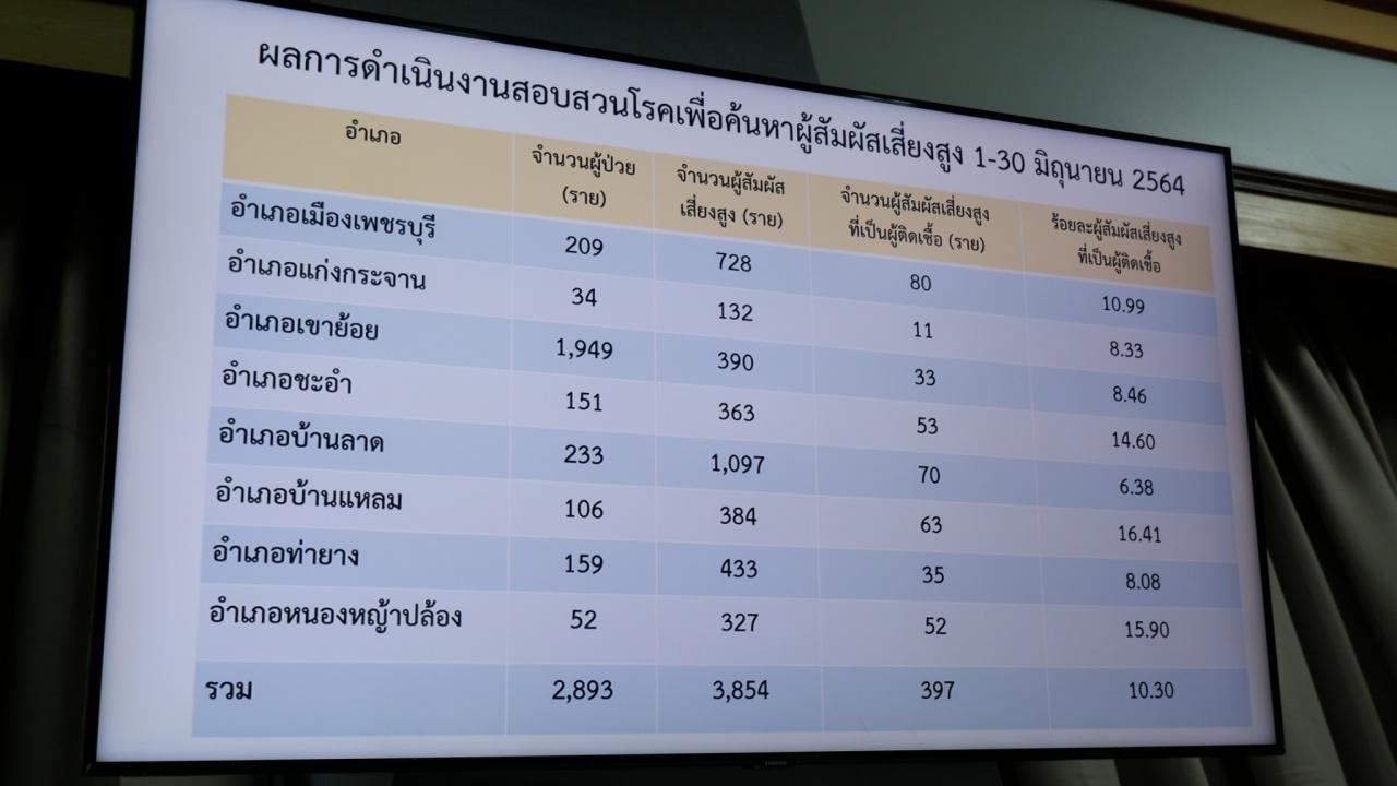 สำหรับสถานการณ์ระบาดของโรคติดเชื้อไวรัสโคโรนา 2019 ที่พบในจังหวัดเพชรบุรี ประจำวันที่ 10 กรกฎาคม 2564 โดยพบผู้ติดเชื้อไวรัสโคโรนา 2019 รายใหม่ จำนวน 91 ราย รวมผู้ติดเชื้อสะสม จำนวน 9,508 ราย เสียชีวิตสะสม 22 ราย สำหรับผู้ติดเชื้อรายใหม่แยกที่มาเป็น 3 กลุ่ม ดังนี้
