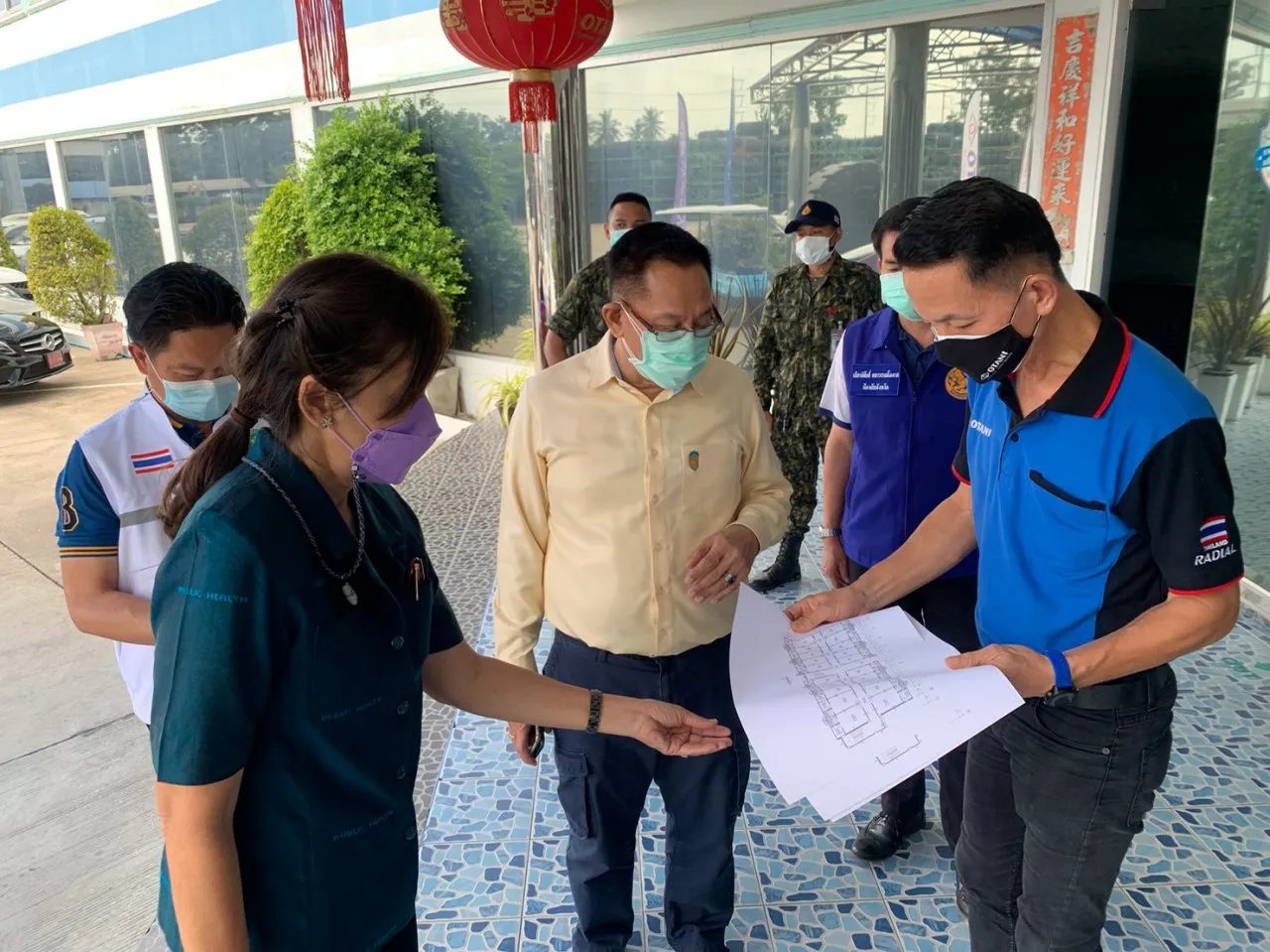 4.ดำเนินการทำ Factory Isolation กักตัวผู้ติดเชื้อภายในโรงงาน โดยจะมีพยาบาลประจำโรงงานและทีมเจ้าหน้าที่สาธารณสุขเข้ามาประเมินอาการวันละ 1 ครั้ง หากประเมินเป็นระดับสีเขียว จะดำเนินการกักตัวภายในโรงงาน หากประเมินเป็นระดับสีเหลือง/สีแดง ให้ดำเนินการส่งเข้ารักษาที่โรงพยาบาลต่อไป