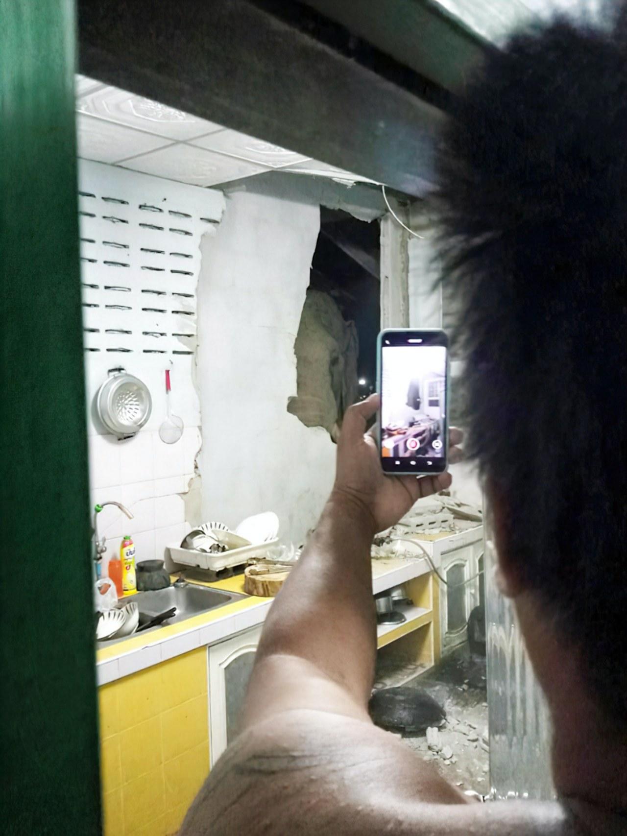 น.ส.รัชฎาวรรณ ผึ้งประสพพร กล่าวถึงเหตุการณ์ด้วยความตื่นเต้นว่า ขณะที่ตัวเองหลับสนิทอยู่กับครอบครัวภายในบ้าน ต้องตกใจตื่นกับเสียงโครมครามของสิ่งของตกหล่นภายในครัว จึงลุกขึ้นมาดู ก็พบ “พลายบุญช่วย” ช้างเจ้าถิ่นป่าละอูตัวเดิม กำลังใช้หัวดันกำแพงปูนห้องครัว ตรงช่องเดิมที่พลายบุญช่วยเคยพังไว้เป็นรูโบ๋ ก่อนมุดหัวเข้ามาใช้งวงล้วงเอาบะหมี่สำเร็จรูป แป้งมัน และน้ำมันพืชแบบถุง ที่เก็บซ่อนไว้ในช่องใส่อาหารกินจนเกลี้ยง จึงถ่ายรูปเครื่องครัวตกกระจัดกระจายไว้ พร้อมตะโกนขับไล่ก่อนช้างเดินหายเข้าป่าไปและแจ้งเจ้าหน้าที่ทราบ