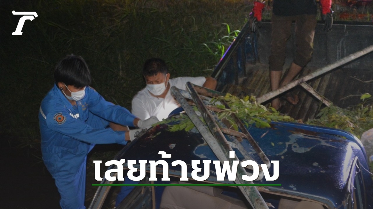 ลุงช่างทาสี วัย 61 ขับกระบะคู่ใจ มุ่งหน้ากลับบ้าน หลังเลิกงาน เสยท้ายพ่วง-พุ่งข้ามเลน ชนเสาตอม่อข้างทาง ดับสลดคาซากรถ