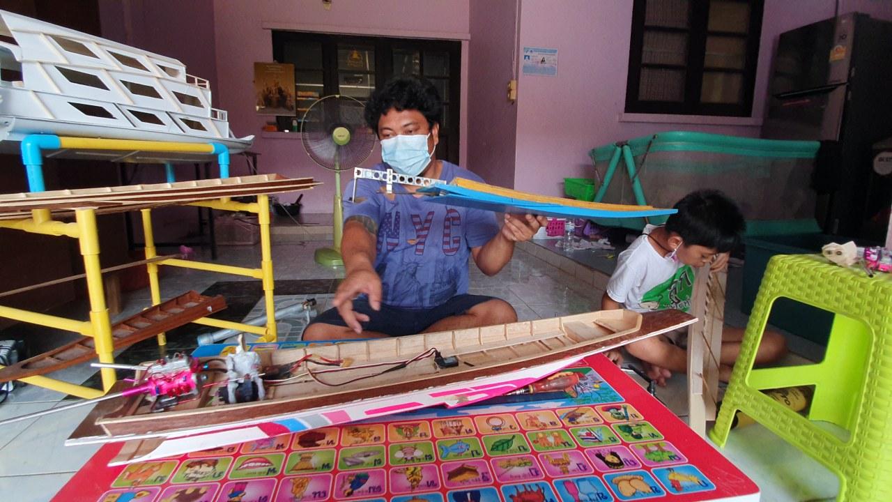 พนง.ระบายน้ำ กทม.คนปทุมธานี ไอเดียเจ๋งใช้เวลาว่างวันหยุดกับลูกชายคนเล็ก ทำเรือจิ๋วติดมอเตอร์ไฟฟ้าบังคับด้วยวิทยุ ขายให้คนที่สนใจเรือ RC แบบไทยๆ หารายได้เพิ่มให้ครอบครัว