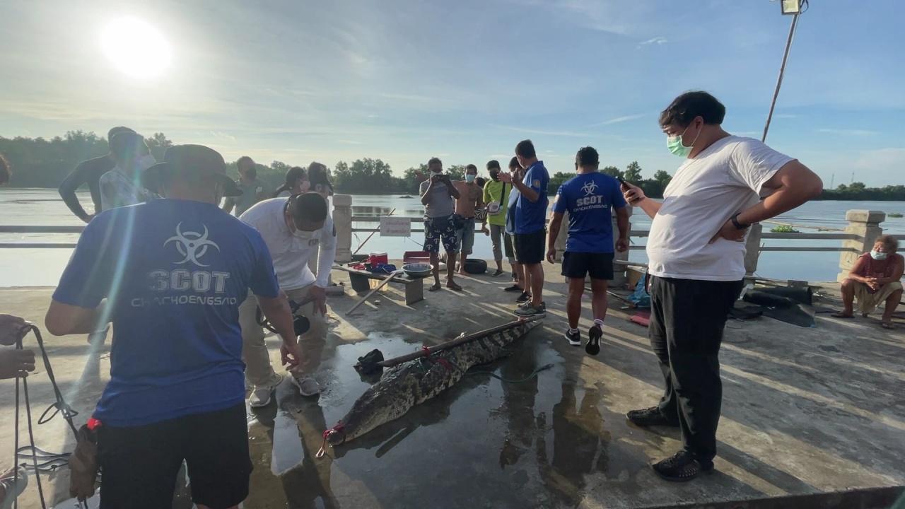 เมื่อเวลา 07.00 น. วันที่ 17 กันยายน 2564 หน่วยกู้ภัยฉะเชิงเทรา ได้รับการประสานจาก นายโต้ง อายุ 37 ปี ชาวบ้านริมฝั่งแม่น้ำบางปะกง ว่า ตนเองสามารถจับจระเข้ได้ ให้เจ้าหน้าที่กู้ภัยมาดำเนินการรับตัวยังท่าน้ำศาลเจ้าอาม่า ซอยเทพคุณกร 5 ต.หน้าเมือง อ.เมืองฉะเชิงเทรา
