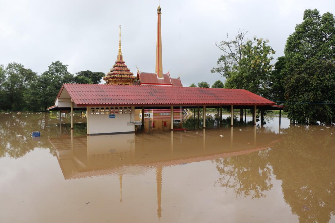 วัดดังอ่างทอง ท่วมถึงโบสถ์ เมรุ หลังน้ำเจ้าพระยาเอ่อล้นขยายวงกว้าง จากตำบลจรเข้ร้องเข้าสู่ตำบลชัยฤทธิ์ ชาวบ้าน พระ เณร ต้องอาศัยศาลาการเปรียญหนีน้ำ นอกจากนี้น้ำยังล้นไหลเข้าถนนทางหลวงชนบท จนท.ต้องเร่งสร้างคันดินป้อง