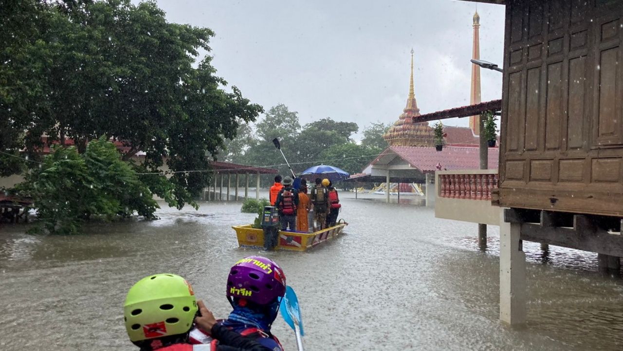 ชาวบ้านที่ อ.ไชโย จ.อ่างทอง ถูกแม่น้ำเจ้าพระยาเอ่อเข้าท่วม ต้องไปอาศัยนอนศาลาวัด ส่วนงานศพสวดแล้วก็ต้องเผา แต่เมรุถูกน้ำท่วมกลายเป็นเมรุกลางน้ำ ต้องประสานกู้ภัยนำเรือมาบรรทุกโลงไปทำการฌาปนกิจ ทุลักทุเลแต่ก็ผ่านพ้นไปได้