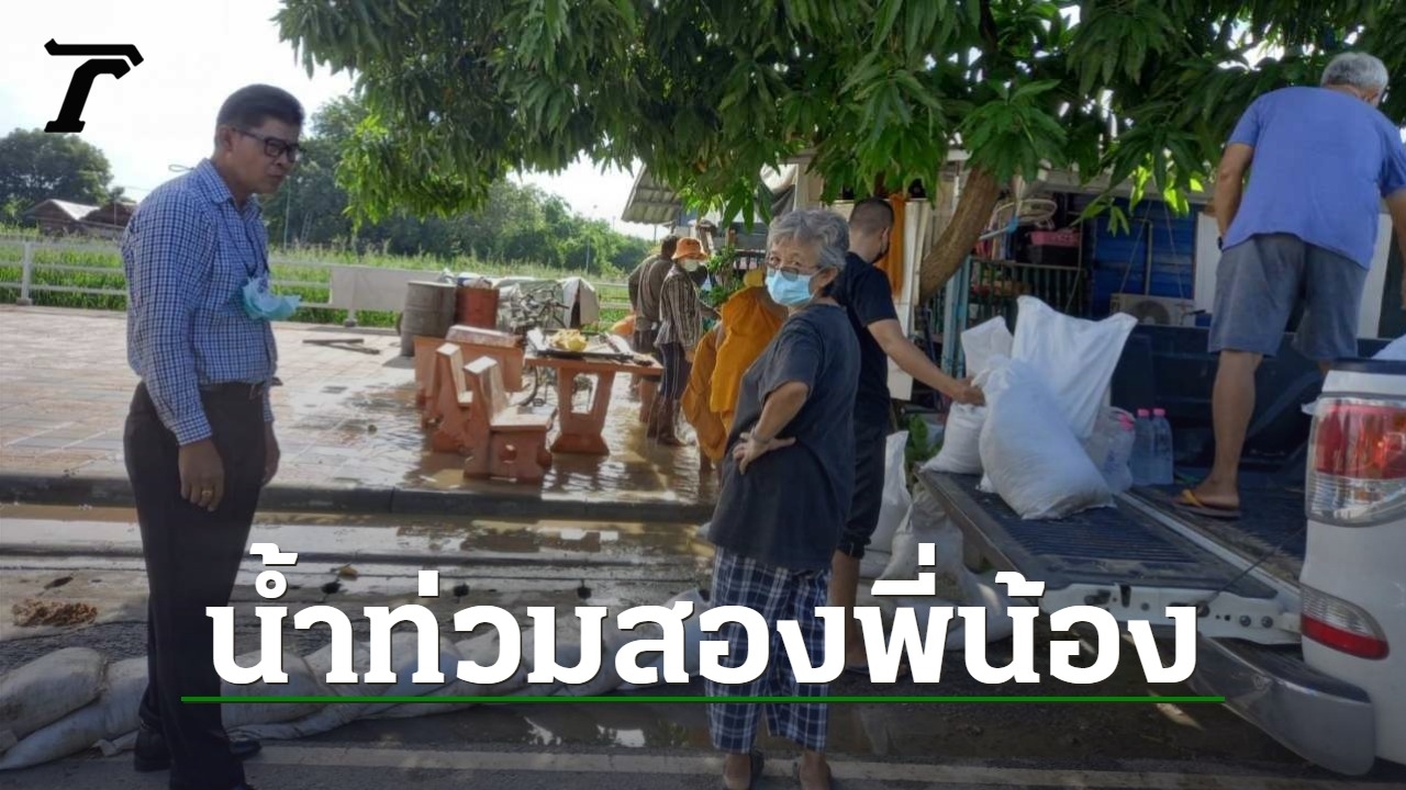 ล่าสุดทางการทางอำเภอ ท้องถิ่น ช่วยเหลือเบื้องต้น ได้แค่นำทรายมากองนำกระสอบทรายมาแจกให้ ตามจุดที่น้ำท่วม แต่ก็ไม่เพียงพอกับชาวบ้านที่เดือดร้อนตอนนี้ ซึ่งพื้นที่อำเภอสองพี่น้องเป็นพื้นที่แอ่งกระทะ จึงทำให้น้ำไหลมาจะลงมาในพื้นที่สองพี่น้องทั่วทุกทุ่งเต็มไปด้วยน้ำท่วมนองไปทั่ว